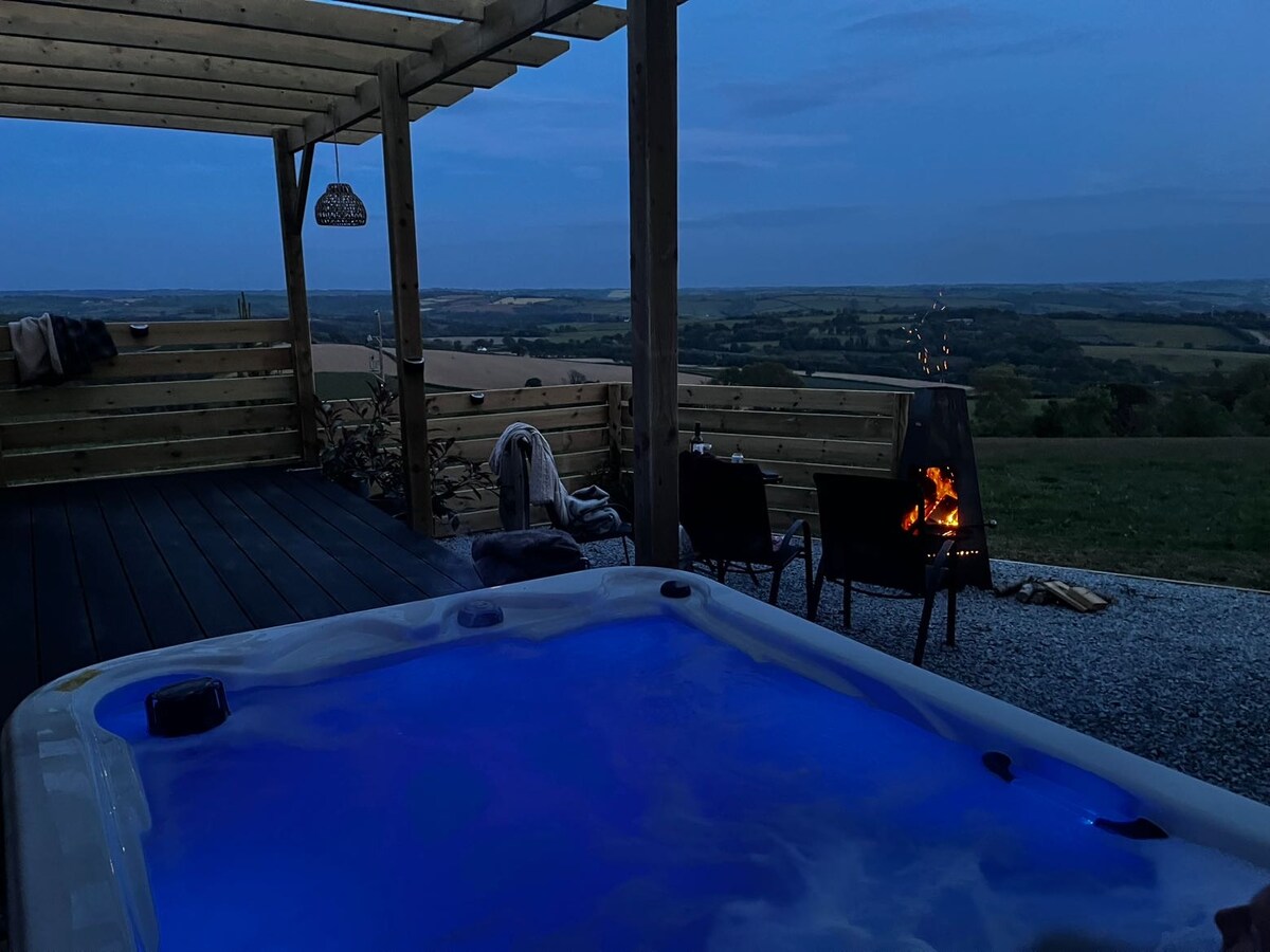 Luxury Shepherds Hut with wood fired hot tub