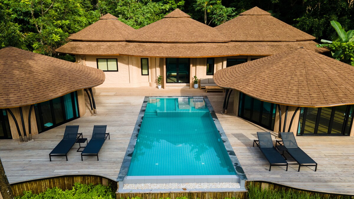 Situado cerca de la playa, nuestro refugio de lujo ecológico te invita a una mezcla armoniosa de vida en islas tropicales con auténtico encanto tailandés. Disfruta de maravillosas vistas al mar y relájate mientras estás rodeado por el exuberante jardín tropical y las colinas cubiertas de selva. Refréscate en la piscina infinita, relájate con tratamientos de bienestar en nuestra zona privada de masajes al aire libre, escucha tu música favorita en sistemas Bluetooth o relájate con una película en Netflix. Disfruta de un servicio de estilo resort con limpieza diaria y desayuno.