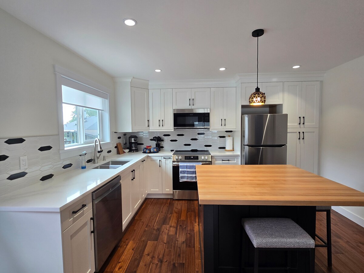 Esta suite con jardín limpia, luminosa y encantadora está situada en un tranquilo callejón sin salida, pero da a tierras de cultivo pastorales. Nuestra casa patrimonial está a solo 5 minutos del centro de la ciudad y a 15 minutos del hospital del distrito de Cowichan. La «HH Garden Suite» está situada en el corazón de la zona de ciclismo de montaña del valle de Cowichan y a no más de diez minutos en coche de cualquiera de las tres montañas de las que presumen los ciclistas del valle. Los suelos con calefacción garantizan un mayor nivel de comodidad para nuestros huéspedes. Lavandería privada en la suite.