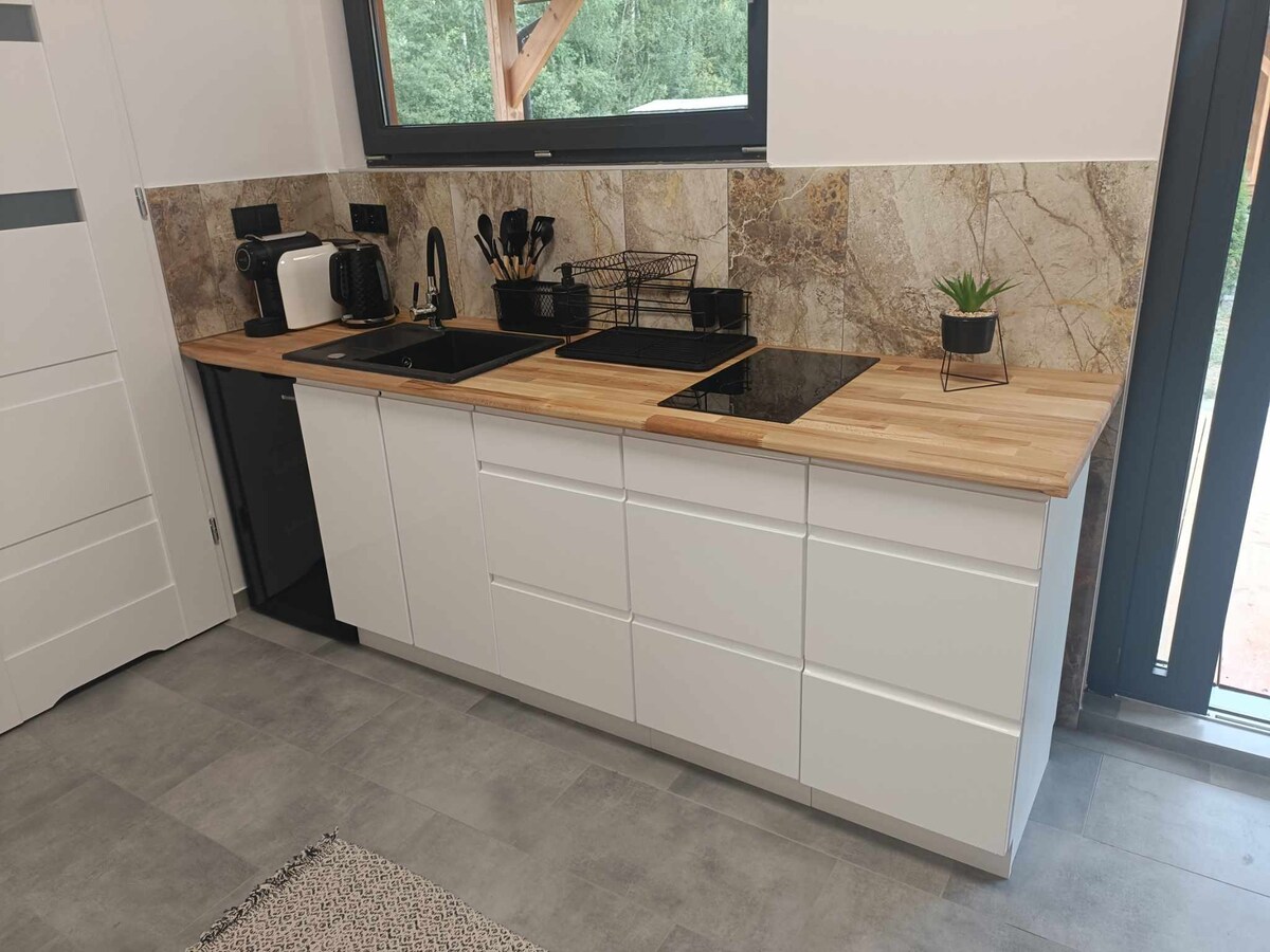 Una casa moderna situada en el bosque ofrece condiciones ideales para relajarse en la naturaleza. Diseñado en un estilo minimalista, con grandes acristalamientos, que ofrecen hermosas vistas al bosque. La casa está equipada con todas las comodidades necesarias, como una chimenea, una cocina totalmente equipada y un baño. En el exterior hay una terraza con zona de barbacoa y un bosque donde puedes relajarte y observar la vida silvestre. Es un lugar ideal para personas que buscan paz y cercanía a la naturaleza.