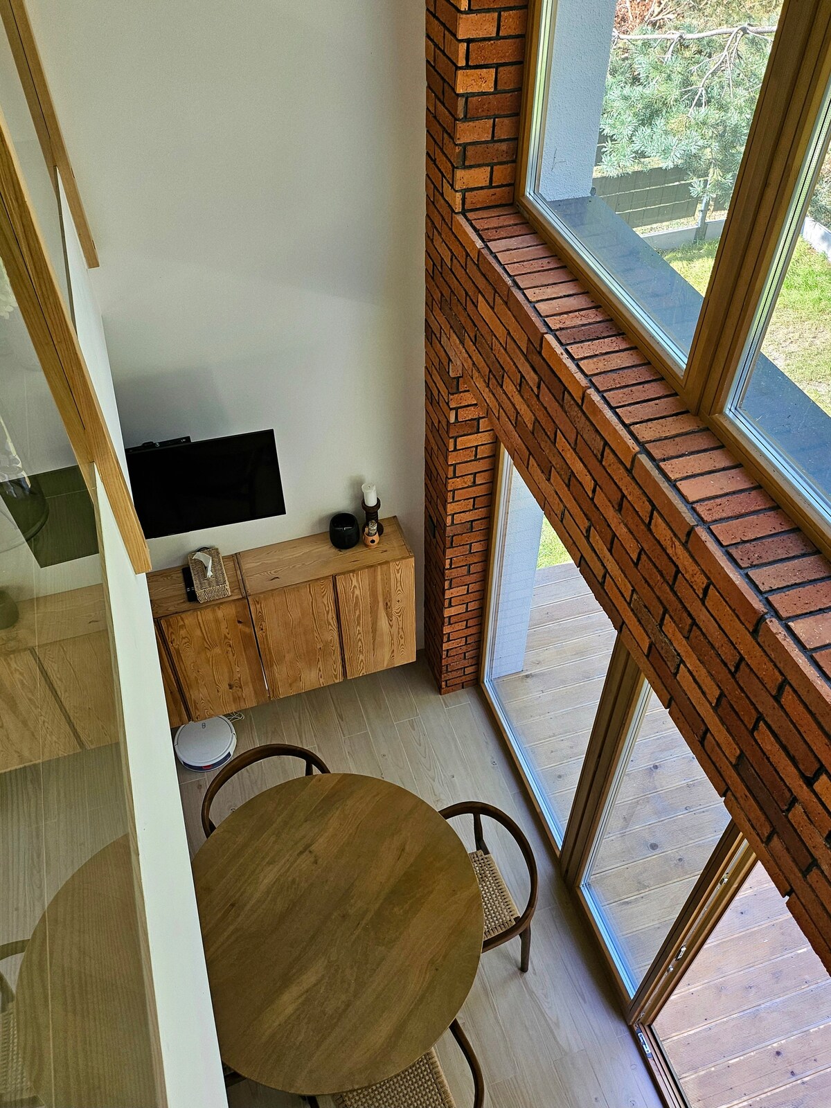 Domek otoczony jest prywatną, ogrodzoną działką 700 m², która zapewnia swobodę wypoczynku i poczucie prywatności. W ogrodzie znajduje się miejsce na ognisko, grill oraz przestrzeń do relaksu na świeżym powietrzu. Bezpośrednie sąsiedztwo lasu pozwala cieszyć się ciszą i spacerami tuż za bramą. Ogrodzony teren jest komfortowy dla par, rodzin i osób z psem. To idealne miejsce na romantyczny wypoczynek blisko natury. Nad morze można dojechać samochodem w około 20 minut.