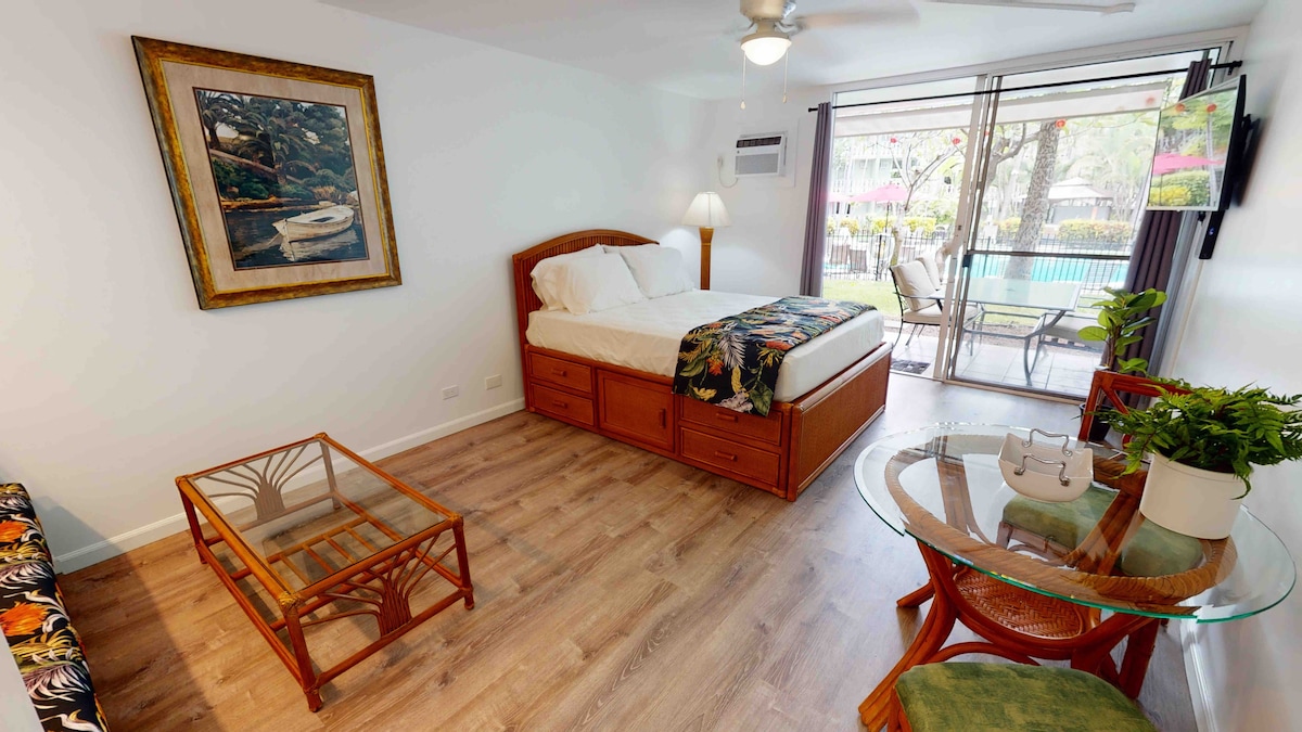 Poolside Studio🤙🏻Ocean View / AC / King🛌10min➡️Beach