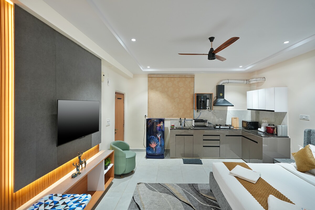 1BHK | Noche de cine | Aire acondicionado, wifi, cocina | Nr Nexus