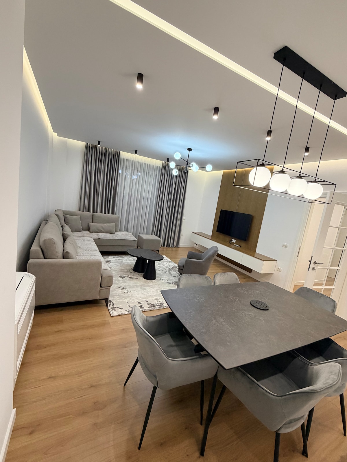 This s a modern and a new apartamament the apartment and all the rooms have balcony and have a beautiful view and are very confortable. Located in city center is just 3 min walk near the pedonale of Korca and the new Municipality and 5 min walk the Old Bazaar restorants and bars. You won't be needing a car to visit the main attrations of the city and nightlife ,anyway in 200 meter radius there is a car rental station taxi ,exchange ,bank,supermarket .etc