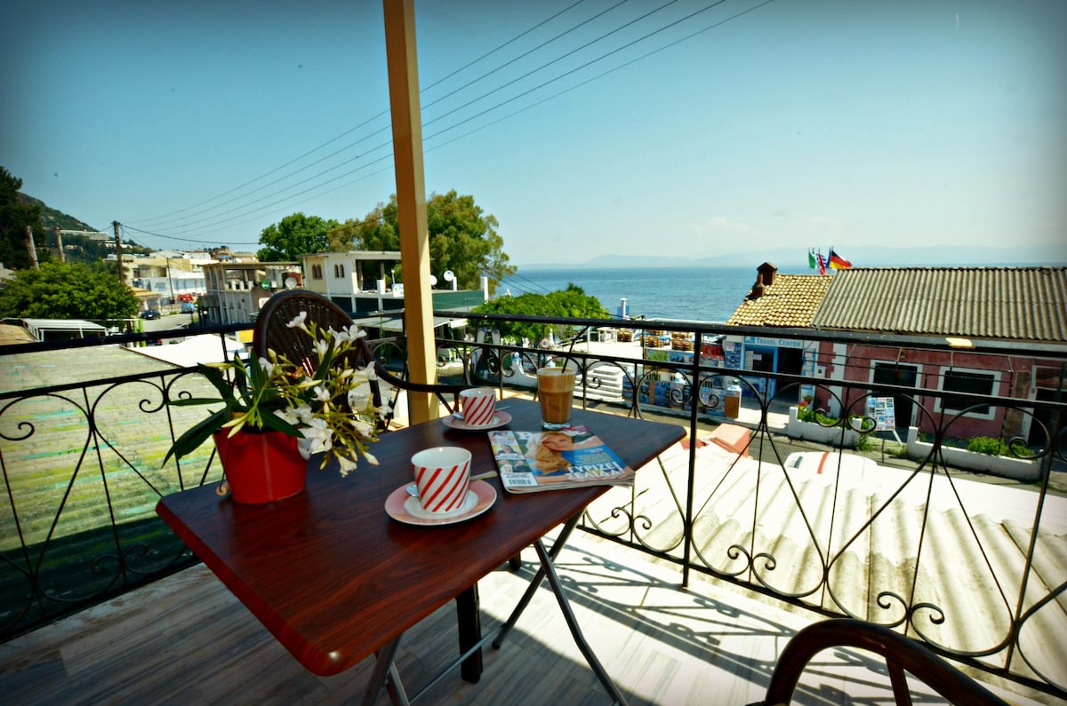 El apartamento recientemente renovado se encuentra en el pueblo de Benitses, a 12 km de la ciudad de Corfú. Está en la parte superior del casco antiguo, en una zona tranquila con aparcamiento privado, a unos cien metros de la carretera principal. Está a solo 5 minutos a pie de la playa, restaurantes, mercado y tiendas. El departamento tiene 25 m2 y está ubicado en el primer piso. Tiene balcón en ambos lados.
