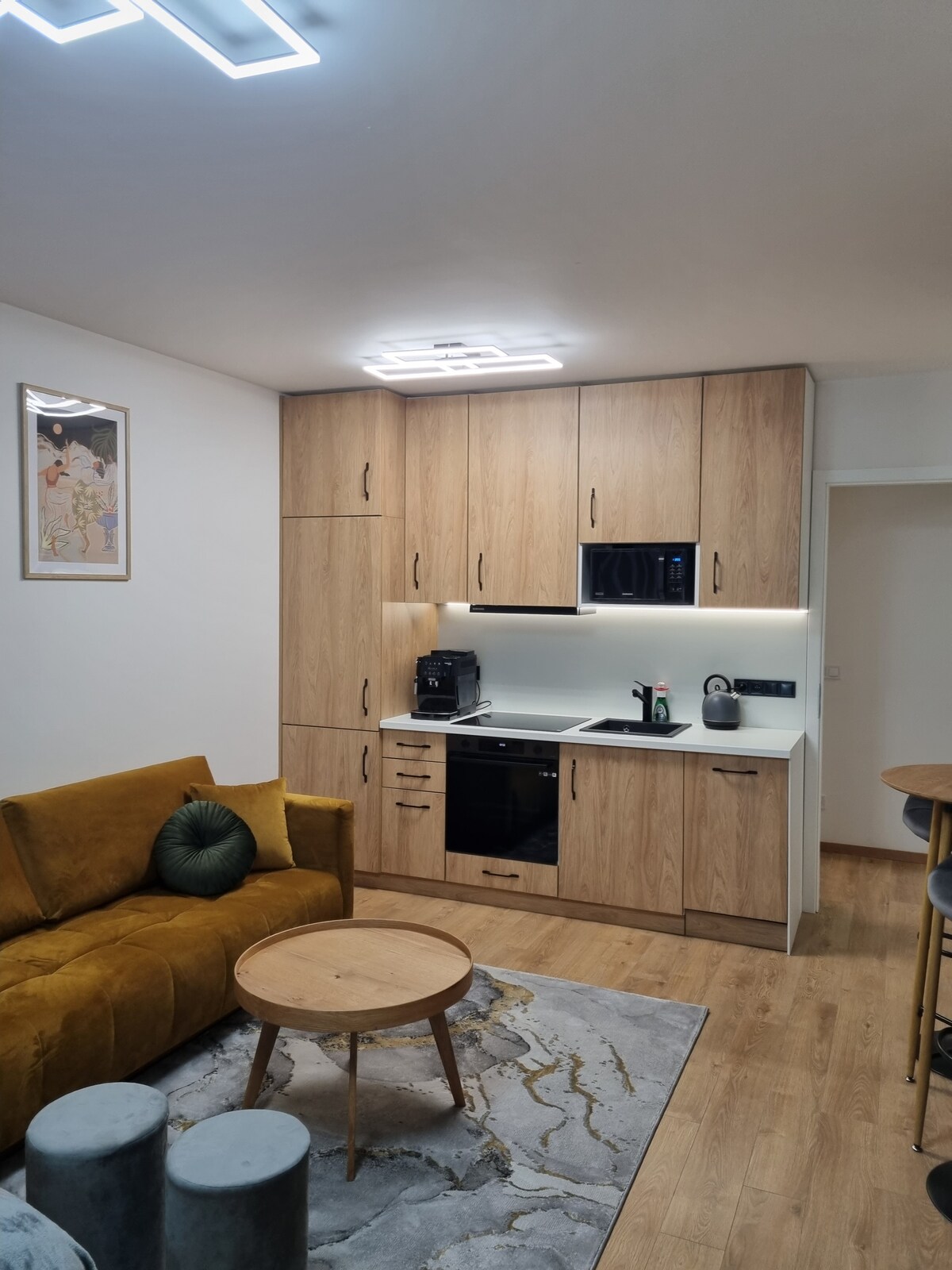 💫 Relájate con estilo y comodidad💫 Alójate en este acogedor y moderno estudio a solo 5 minutos a pie de Main Street (Hlavná) con tiendas, cafeterías y restaurantes. 📅 ¡Reserva tu estadía hoy mismo! 🚀 ✨ Características: 🛌 Cama tamaño king (180x200 cm) para la máxima comodidad 💻 Espacio de trabajo exclusivo y wifi rápido 📺 Smart TV para tu entretenimiento ❄️ Aire acondicionado. 🌿 Balcón para relajarte 🚗 Aparcamiento gratuito 🛒 Tienda de comestibles, restaurante, farmacia y cajero automático a 1 minuto Estaciones 🚉 de autobús/tren a 25 minutos a pie/a 5 minutos en coche ✈️ Aeropuerto a 15 minutos en auto ❓ Envíenme un mensaje