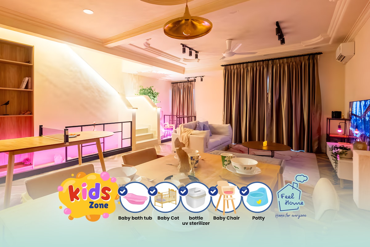 Welcome to a cozy, newly renovated home perfect for family stays. Designed with families in mind, the home features generous common areas for quality time - whether you are watching movies, cooking, sharing meals or simply relaxing together. There are two living spaces on the two different floors with smart TV. Walking distance to HELP University and just 7 km from Subang Airport. Ideal for family stays, short visits, or university guests. Comfort, convenience, and space — all in one place.