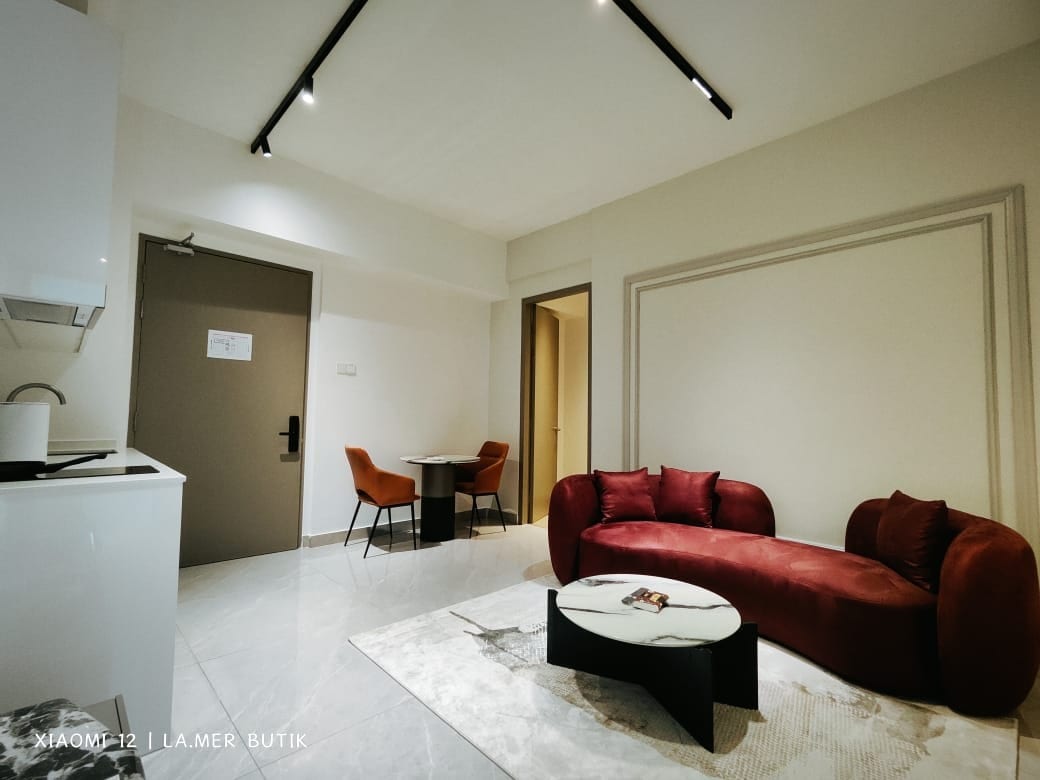 🍳Complimentary breakfast for 2 💡 For safety reasons, iron is not provided, but a garment steamer is available upon request 🌇 Located on Level 14 with views of KK Mosque, Likas Bay & Mount Kinabalu 🛏️ 1 bedroom with 1 queen + 1 single bed 📺 Living area with smart TV, WiFi, sofa & coffee table 🍳 Kitchenette with basic cookware & cutlery 🍽️ Dining table with 2 chairs 🌅 Private balcony