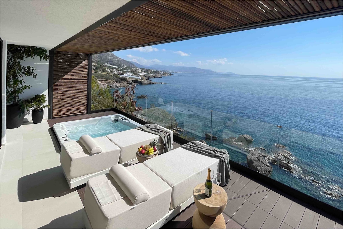 ¡Disfruta de unas vacaciones tranquilas en el mar! Despiértese por la mañana viendo un amanecer único desde su cama. Relájate en el jacuzzi al aire libre, en la piscina compartida, en las terrazas, escuchando el sonido de las olas y el canto de los pájaros. Las vistas son excelentes desde cualquier lugar. Frente a usted, el azul infinito del mar de Creta, a su alrededor, la impresionante naturaleza cretense. Desde los dos salones hasta los dormitorios, el comedor, la cocina, los baños, la ducha al aire libre, la vista es impresionante.