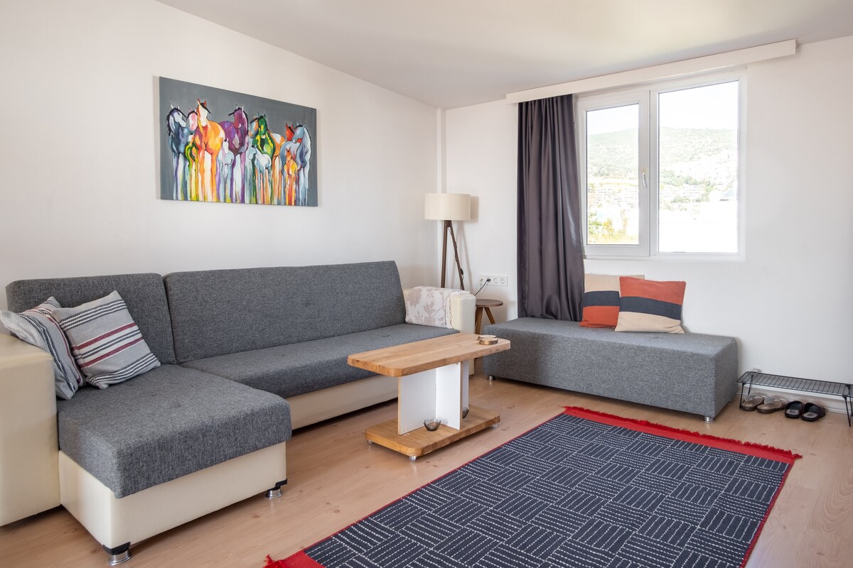 🌿 ¡Bienvenido al oasis de la ciudad pacífica en el corazón de Bodrum! Siente la tranquilidad en esta casa luminosa y espaciosa ubicada en el centro de Bodrum, a pocos pasos de la playa y de las principales atracciones. ☀️ Disfruta de grandes ventanales iluminados por el sol, una acogedora sala de estar, un balcón con vistas al mar y una cocina totalmente equipada. Descansa en el dormitorio tamaño queen y disfruta del ambiente cálido y acogedor del barrio de Bodrum. 🌺 Cuidaremos bien de ti.😇