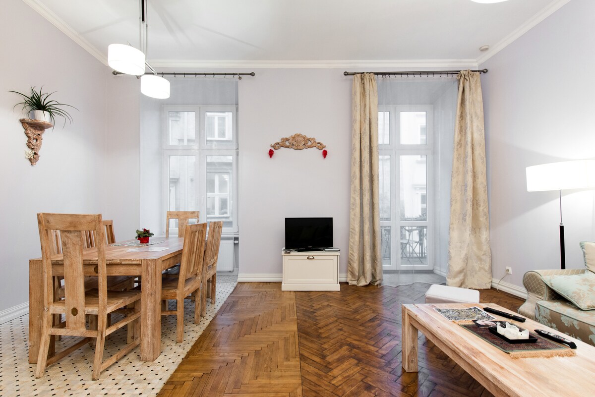 Apartamento privado en el segundo piso de un edificio de apartamentos de 1907, techos muy altos, sensación de espacio, parqué antiguo con un crujido atmosférico que añade encanto a cada paso :) A 50 metros del parque Planty Krakowskie, a 150 metros de la barbacana y la Puerta de San Floriano, a 300 metros de la plaza del mercado. En una palabra, ¡el corazón palpitante de la ciudad!