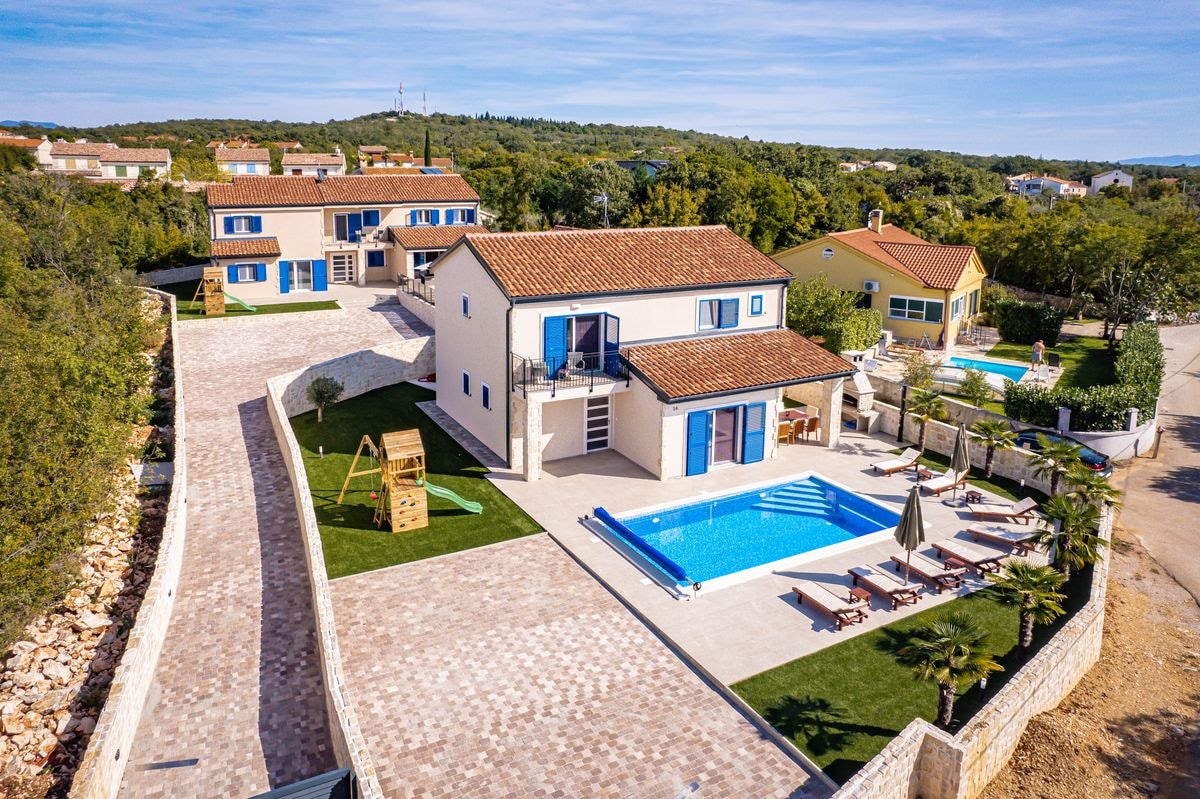 La exquisita Villa Harmony se encuentra en la isla de Krk. Tiene una impresionante vista panorámica. El punto focal de la villa es la piscina al aire libre de 50 m2 con vistas al olivar. También hay una cocina de verano y una zona de parrilla junto con una gran mesa y sillas. En la planta baja hay una amplia sala de estar y una cocina y un dormitorio con baño privado. Tres dormitorios en suite están situados en la primera planta. La villa también cuenta con un sótano preparado para el entretenimiento de niños y adultos.