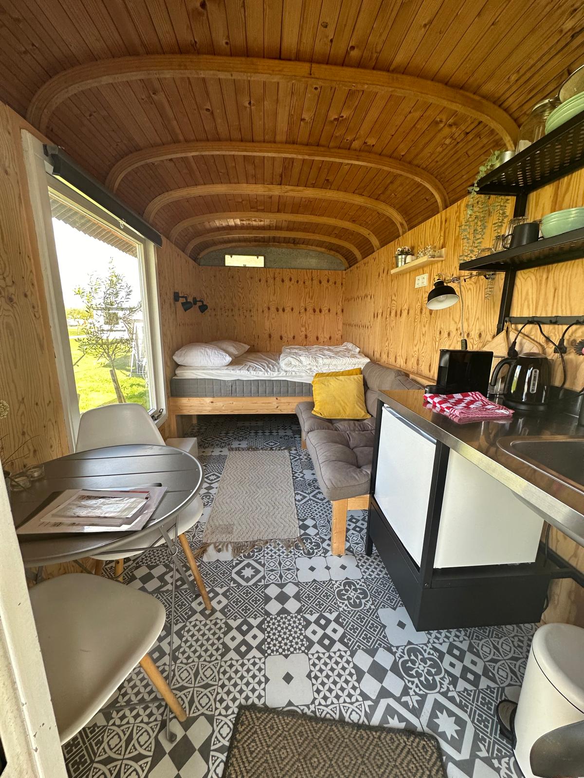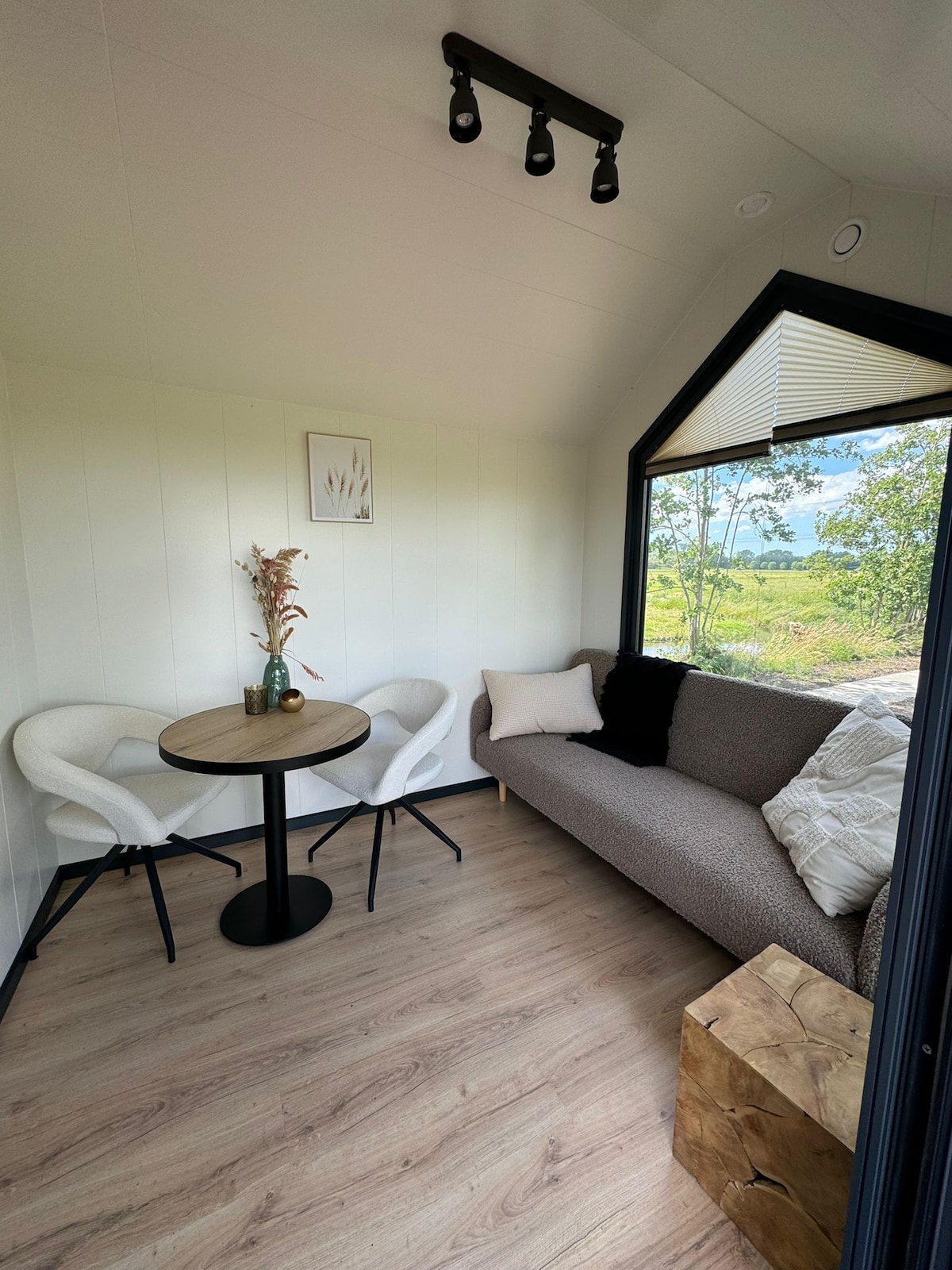 En esta pequeña casa se puede disfrutar de la simplicidad y la vista panorámica en medio del pólder. Más cerca de la naturaleza, con menos cosas y su huella ecológica, pero con todas las comodidades. Puedes relajarte en el huerto de frutas y en la terraza. Debido a los grandes ventanales, también puedes experimentar la vista del vasto polder en su interior. El inodoro y la ducha están afuera junto a la puerta principal.