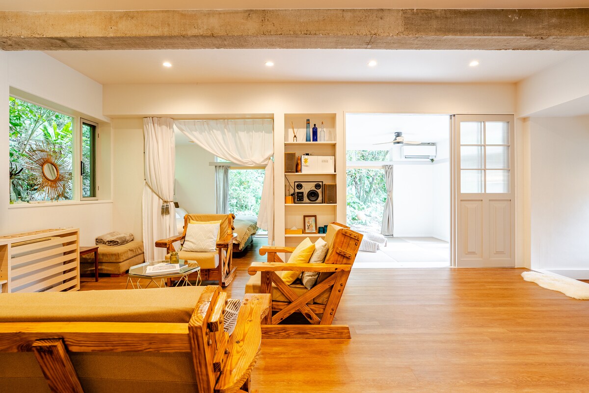Alojamiento en la naturaleza en Okinawa, bosque de Yanbaru, dormitorio solo para mujeres