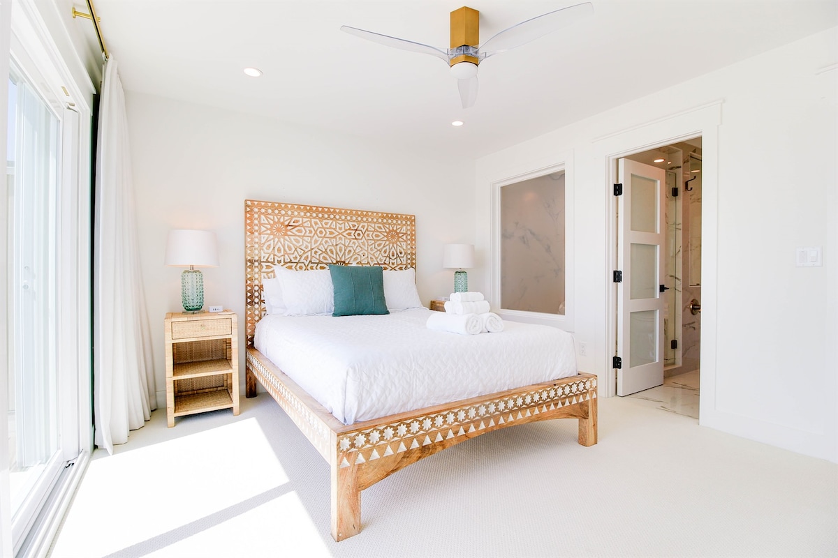 Experiencia de lujo en un entorno hermoso. Escondida detrás de la casa principal, esta casa de huéspedes privada se encuentra en el corazón de Carolina Beach, a poca distancia a pie/en bicicleta de la playa y el paseo marítimo. A 5 cuadras del acceso al mar/playa pública. A poca distancia a pie o en bicicleta del parque estatal, canchas de tenis, vías verdes, tiendas y restaurantes. La casa cuenta con un salón y comedor privados cubiertos al aire libre bellamente ajardinados con ventiladores, fogata y Smart TV. Jacuzzi privado recientemente agregado y área de parrilla ampliada.