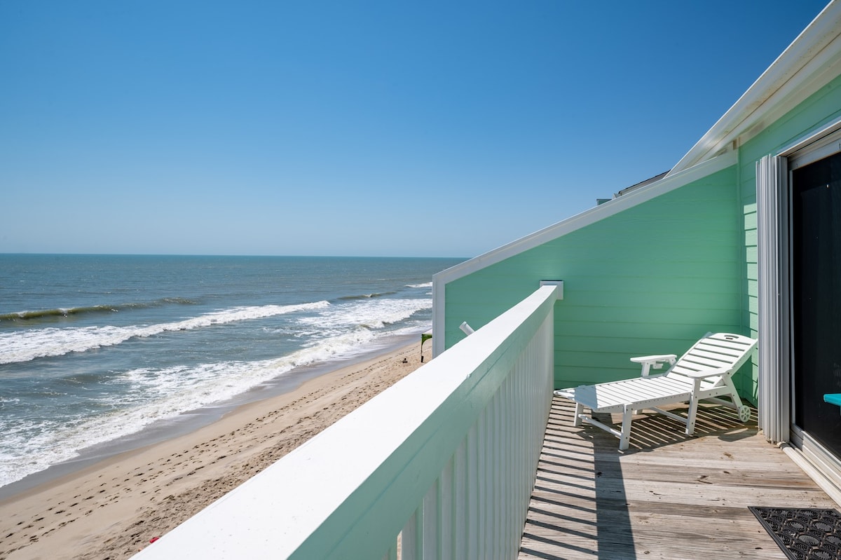 Oceanfront townhome renovated-November 2022 with stunning views. Enjoy a fully stocked kitchen, oceanview lower deck for meals, and private upper deck off the master—perfect for stargazing Features include 3 flat-screen TVs (2 Roku), washer/dryer, free WiFi & cable, and easy beach access just steps away Sleeps 6 | Free reserved covered parking Resort amenities: 3 outdoor pools, indoor heated pool, hot tub, sauna, gym, tennis & basketball courts, beachfront gazebos, playground & shuffleboard