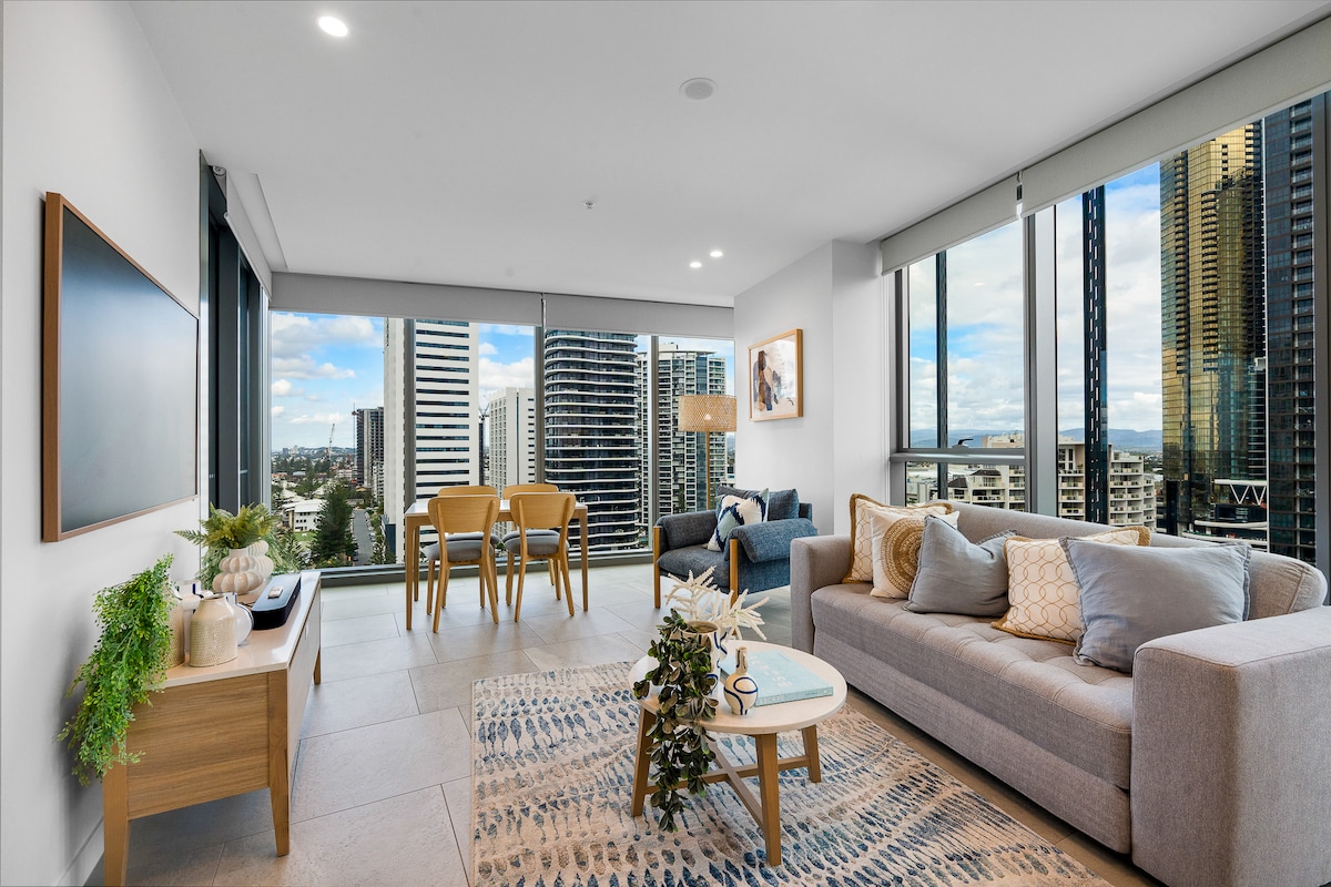 Our exceptionally well-presented family-sized apartment is located on level 32 of Oracle Tower 1. Wrap-around balconies offer breathtaking views of the beach, northern coastline and hinterland. As the sun sets, you’ll be mesmerised by a wonderland of twinkling lights. The Oracle is the ideal family destination, perfectly situated in the heart of Broadbeach. Surrounded by the best beaches, parks and restaurants, it’s a slice of paradise waiting to be explored. We look forward to welcoming you!
