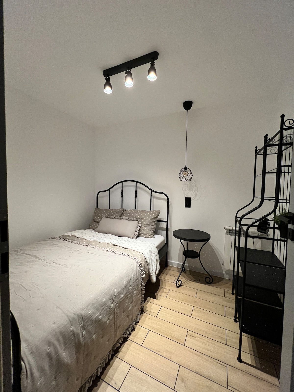 Pequeño estudio adecuado para una persona o una pareja en el centro de la ciudad. Estacionamiento frente al apartamento.