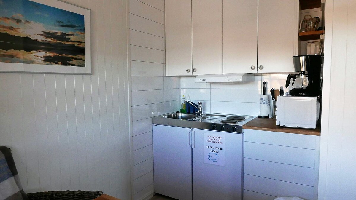 Una cabaña estudio perfecta para aquellos que desean estar cerca de la naturaleza ártica y del cielo de luz norte. La acogedora y pequeña cabaña es de 21 m2 de tamaño, y está totalmente equipada para dos personas con alojamiento para dormir en cama doble o cama individual. La pequeña cocina contiene un comedor, cocina eléctrica, nevera/congelador y un horno microondas. El baño tiene una ducha y un inodoro. El gran balcón te invita a disfrutar de una hermosa vista sobre el fiordo y las montañas todo el año.