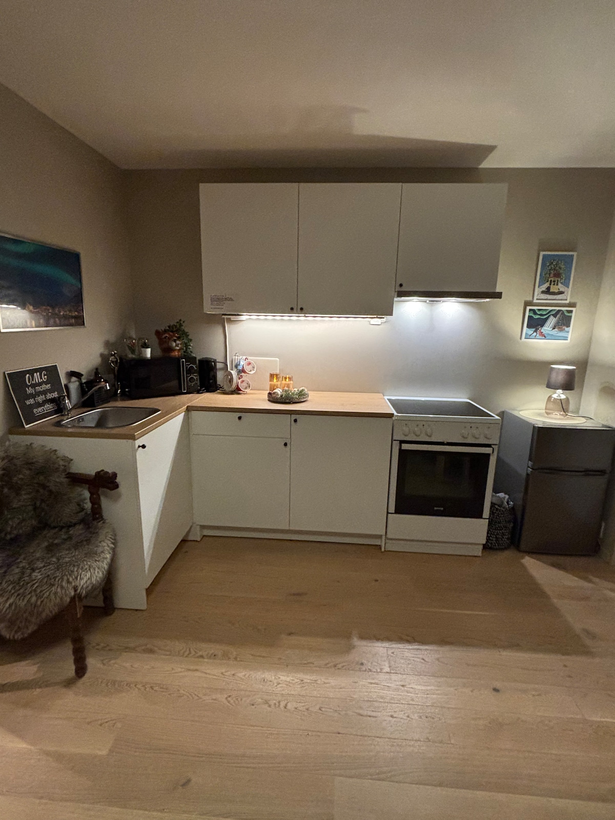 Estudio/departamento (17m2) cerca de la mayoría de las cosas. Entrada privada. El lugar se encuentra en un entorno tranquilo en Bo-i-nord Tromsø hacia el oeste. A 5 minutos en coche o a 25 minutos a pie del aeropuerto. A 5 minutos caminando de la parada de autobús con línea directa al centro de la ciudad. A 7 minutos del centro comercial más grande de Tromsø. El apartamento tiene una cocina totalmente equipada y baño privado con lavadora. Estacionamiento disponible bajo petición. La zona para dormir es un sofá cama doble en la sala de estar.