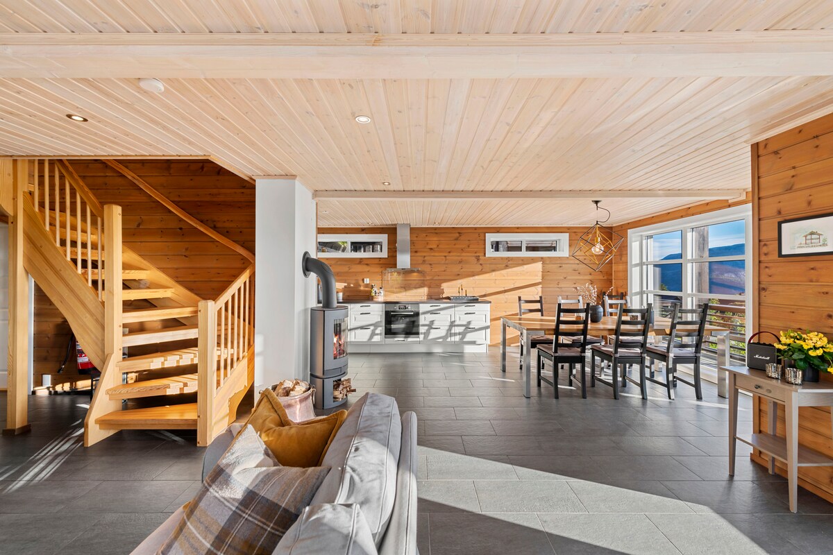 La verdadera sensación noruega se puede encontrar en nuestra espaciosa villa de madera de más de 175 m2 en Vradal. Ubicado en la ladera de una montaña contra el borde del bosque, tienes unas vistas fantásticas a todos los lados. La casa tiene todas las comodidades, buena conexión WiFi, calefacción de botas de esquí, cocina totalmente equipada y una amplia sala de estar con mesa de comedor y acogedora sala de estar junto a la estufa. Sala de TV separada y encantadora ducha de vapor y bienestar con sauna. Fuera de un punto de barbacoa y de carga para vehículos eléctricos (salida por separado).