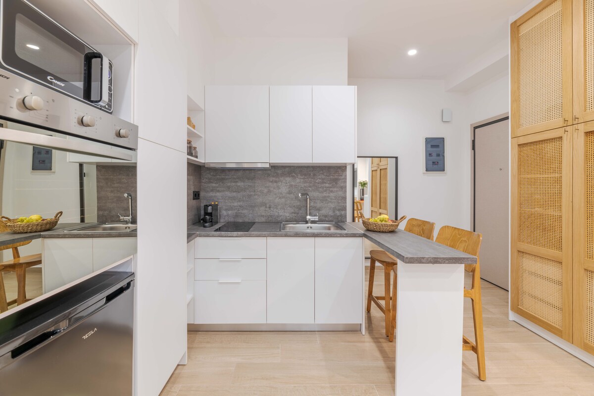 Descubre la comodidad de un apartamento tipo estudio de 30 metros cuadrados en el corazón de Atenas. Tiene 2 camas de tamaño completo, una elevada cerca del techo. Para el entretenimiento, el estudio ofrece dos televisores inteligentes de 55pulgadas y un televisor inteligente de 32 pulgadas. La cocina está totalmente equipada con cocina de cerámica, cafetera y microondas, ideal para preparar comidas. También hay una lavadora disponible para mayor comodidad. Esta es una casa inteligente totalmente equipada, con integración de Google Talk, que ofrece una experiencia perfecta y moderna para tu estancia.