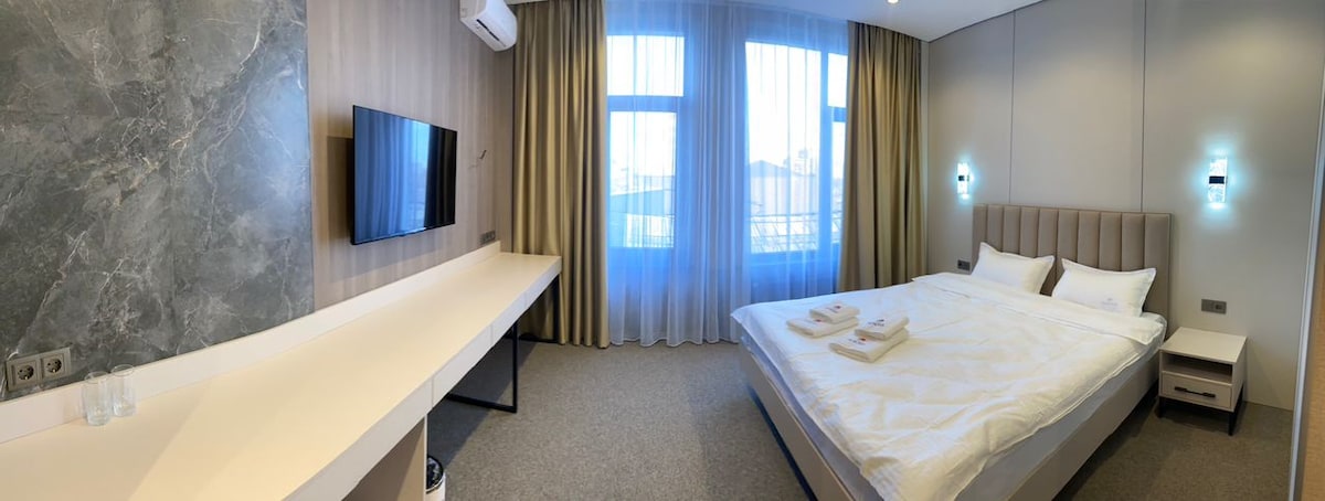 Добро пожаловать в наш стильный бутик-отель! 📍 Расположение: удобное, в центре города, рядом с основными достопримечательностями. 🛏 Номера: В отеле всего 12 уютных номеров с двухместным размещением. — удобные кровати — кондиционер — Wi-Fi — телевизор — ванная комната — банные принадлежности 🌅 Завтрак: Каждое утро вас ждёт вкусный завтрак в формате шведского стола с панорамным видом на город на нашей террасе. Будем рады видеть вас у нас — создаём комфорт, в который хочется возвращаться!
