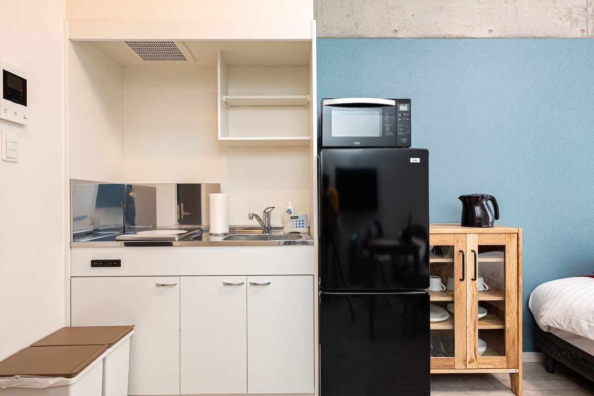【Recomendación de STAYTUS 】recién construida en agosto de 2021, con cocina. Puedes alojarte mientras vives en Kagoshima. Ubicación muy conveniente: a 2 minutos a pie desde la salida este de la estación de Kagoshima Chuo. ✤Este departamento tiene cocina y utensilios de cocina ✤Lavadora-secadora y detergente incluidas. ✤Wifi gratuito disponible ✤VOD disponible si tienes tu propia cuenta (Netflix, Hulu) Si no lo haces, puedes ver programas de televisión regulares. Llegada ✤no cara a cara (hay una tableta para el registro de entrada y salida en la entrada)