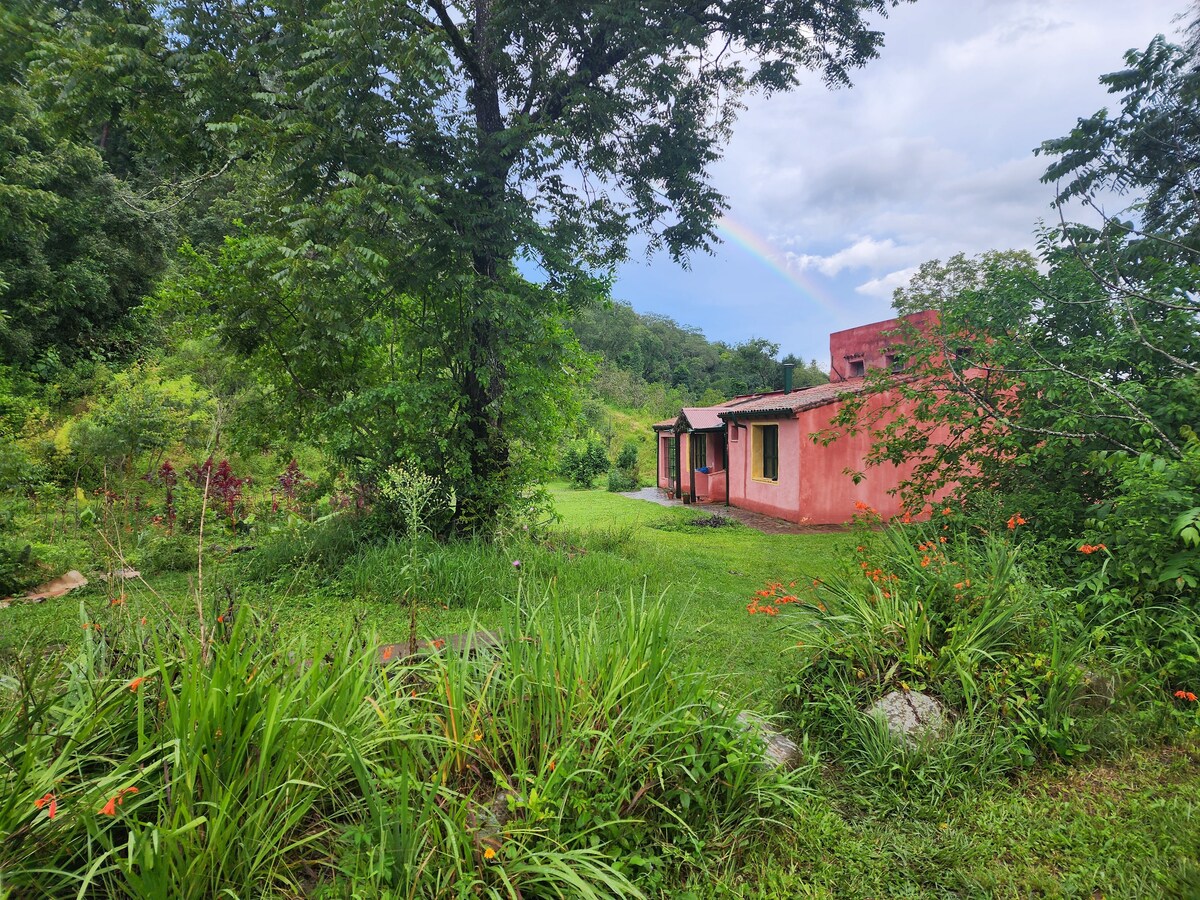 Hermosa casa de diseño emplazada en las Yungas, amplios espacios, arte y gastronomía, aire y luz. En una zona muy tranquila, a 3 km del pueblo de Vaqueros, sobre el cerro y muy cerca de la capital salteña. Imponente vista desde adentro y afuera de la casa, galería, parrilla, pileta, laguna, ideal para caminatas y disfrutar de la naturaleza, a metros del río. Equipada para disfrutar en familia o con amigos. Promovemos el cuidado del agua y la sostenibilidad del ambiente. Atendida por sus dueñas