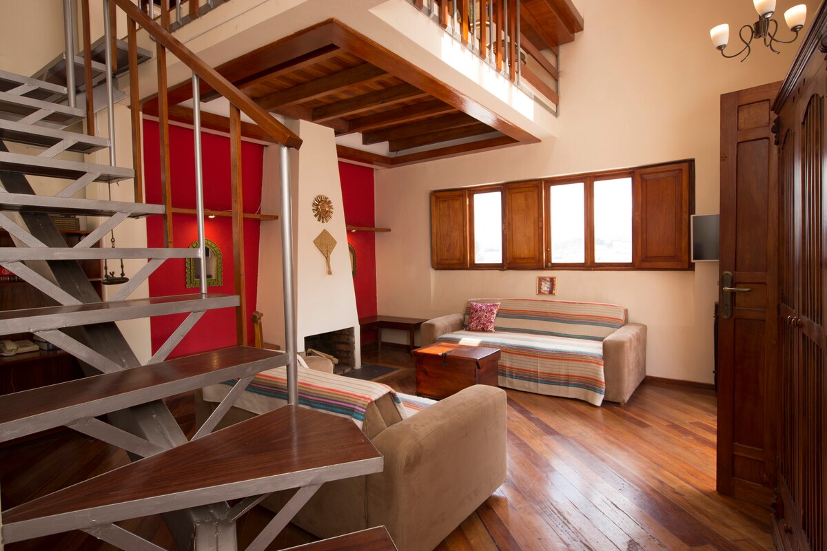 Chuquiragua Loft es una casa de estilo boutique para parejas, aventureros solitarios, amigos y viajeros de negocios que aprecian los toques de diseño y las comodidades modernas para estancias cortas y largas. LO MÁS DESTACABLE: - Ubicación céntrica. - Detalles coloniales tradicionales. - Vistas espectaculares. - Acogedora chimenea. - Wifi de alta velocidad. - Seguro y privado. Chuquiragua es uno de los seis apartamentos privados dentro de una casa colonial de 100 años bellamente restaurada, ubicada a solo cinco minutos a pie del Centro Histórico de Quito.