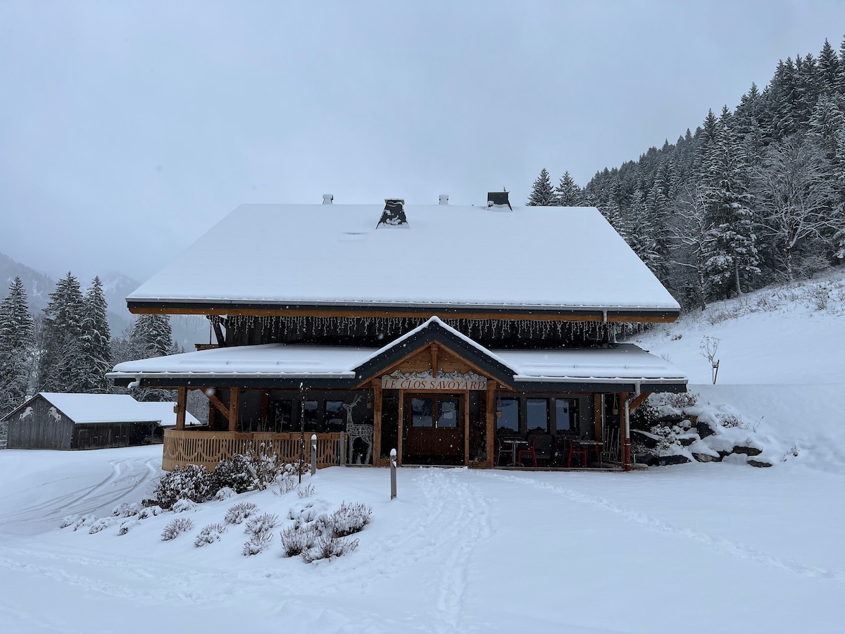 Notre gîte du CHALET DE L'ABBAYE, classé 2 étoiles par le ministère du tourisme, est à 200m du centre du village et à 250m du télécabine. Vous l'apprécierez pour son confort, son emplacement, son équipement, son isolation thermique et phonique, le caractère paisible de l'environnement, la vue dégagée sur le village et sur la montagne, l'absence de vis-à-vis, la toute proximité des commerces, la multitude d'activités disponibles dont le domaine des Portes du Soleil. Parfait pour couple & enfants
