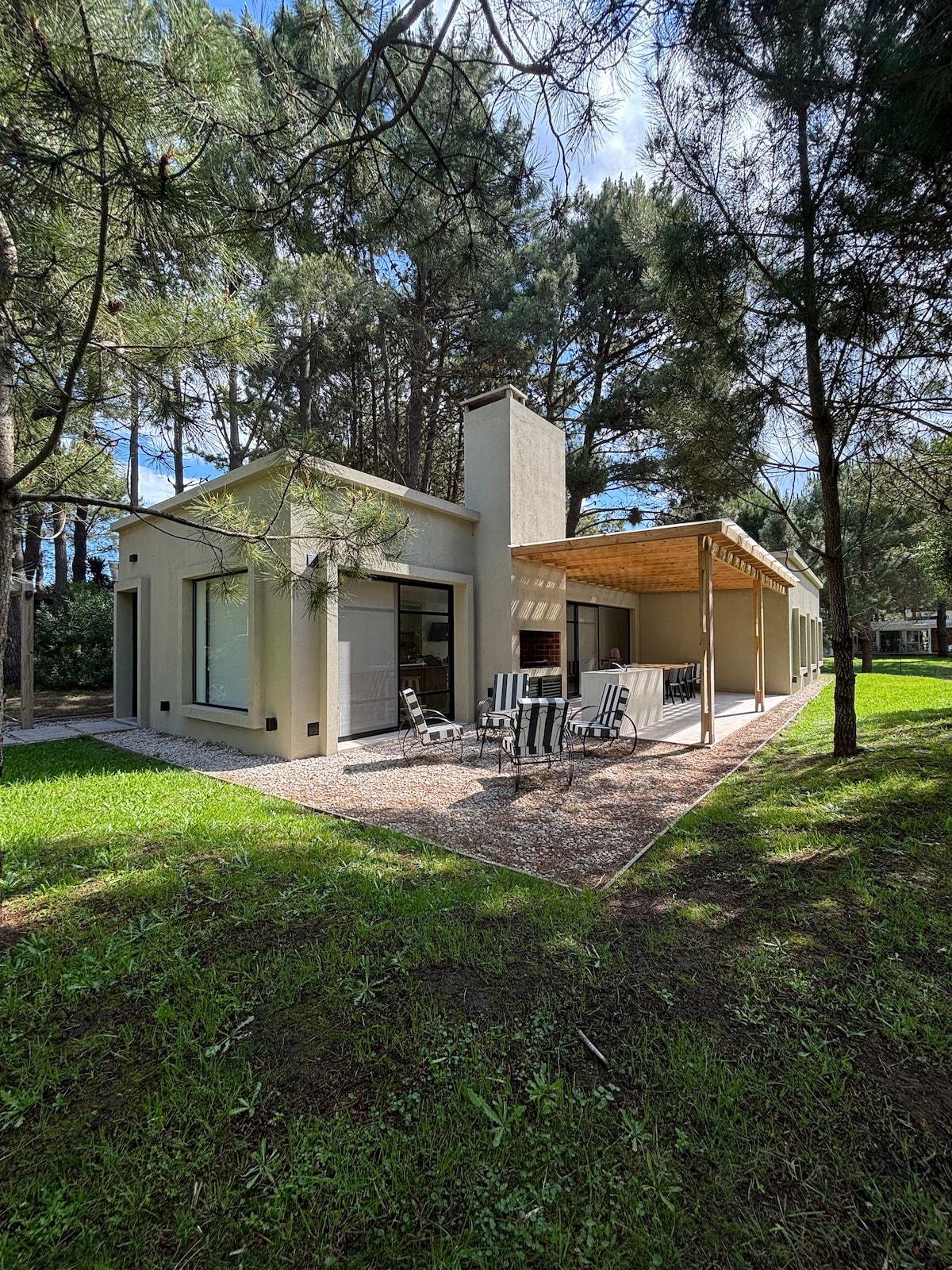 Casa ideal para tus vacaciones o descanso. Nuestra casa en el bosque de Costa Esmeralda está totalmente equipada. Tres dormitorios con tv (Direc Tv), dos baños. El dormitorio principal en suite con balcón vista al bosque. Gran parque con un pequeño espacio para refrescarse y zona de fogón. Internet en toda la casa. Aire frío/calor y salamandra. Cocina integrada con cava, cafetera Nespresso,lavavajillas, cocina y horno eléctrico Lavadero completo Galería con amplia parrilla