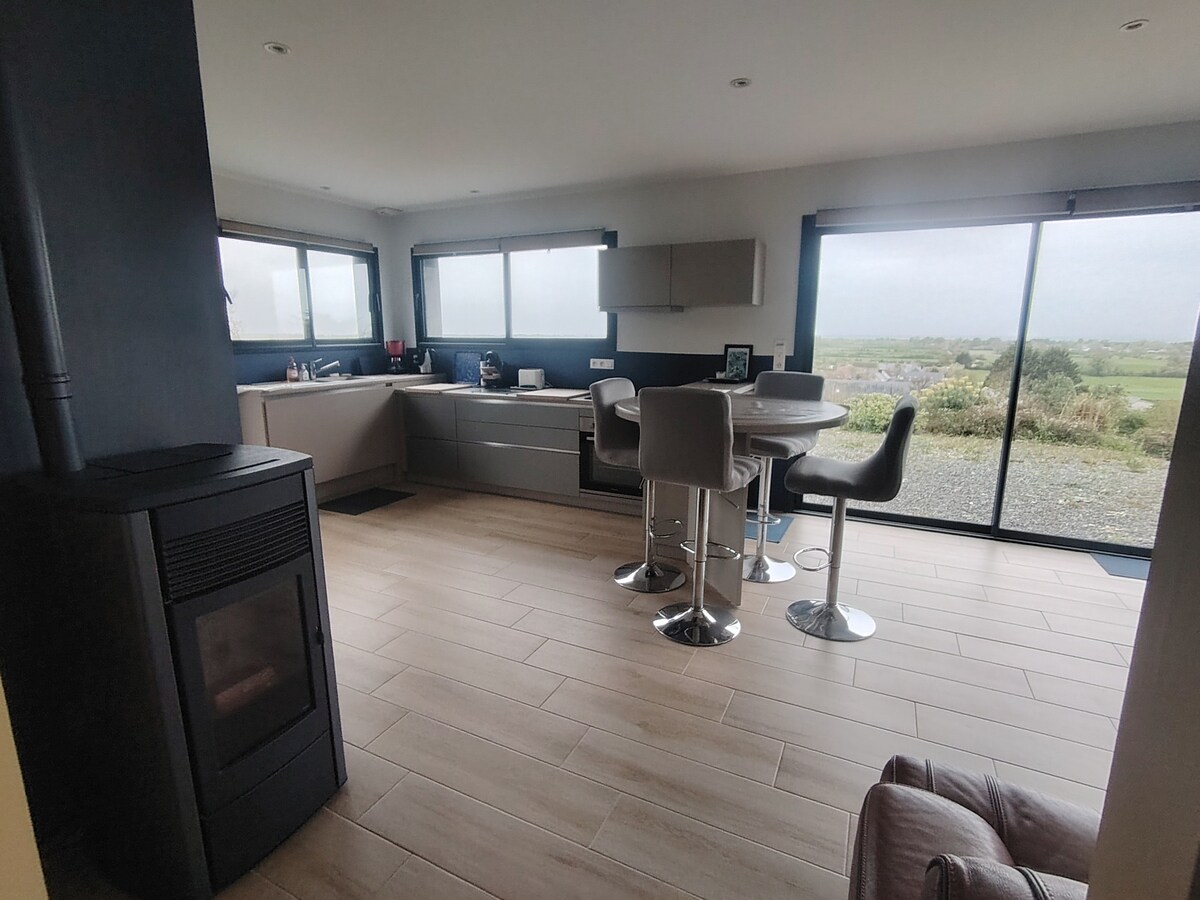 Ubicada en las colinas, nuestra casa de campo recién creada te da la bienvenida. Con los pies en el agua (a 1,5 km de la orilla), en un entorno tranquilo y verde, su estancia será cómoda. Sobre todo, las vistas de los arboledos y el mar serán su telón de fondo durante su estancia en la casa rural Vent d'Ouest... Un lugar para encontrar la calma y los grandes espacios. Se trata de paseos a pie, en bicicleta, en coche o en barco para descubrir o redescubrir el Cotentin que se le ofrecen.
