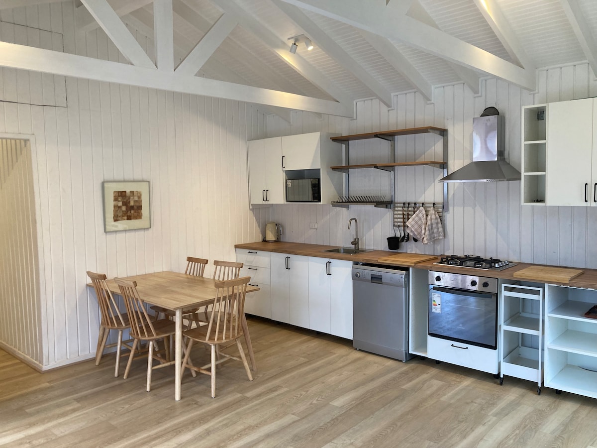 Disfruta de este acogedor estudio estilo rustico/industrial que te hará sentir tan cómodo que no querrás irte. Atendido x sus dueños. A 5 minutos a pie de la playa, supermercado y feria artesanal. Cocina semi equipada, entrada independiente, estacionamiento interior y patio de 350 m2.