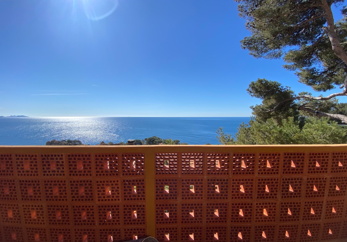 Relájese en este encantador apartamento debajo de una villa provenzal, frente al pinar, y las olas abajo. Decorado con amor para unas vacaciones inolvidables. Disfruta de las vistas al mar, con acceso directo por el pinar Privee, y parada de picnic. El apartamento está situado encima de la cala de la rueca y su gran playa de arena fina. kayaks a su disposición para sus paseos.. Por la noche se puede disfrutar de la tranquilidad, el amanecer y las estrellas.