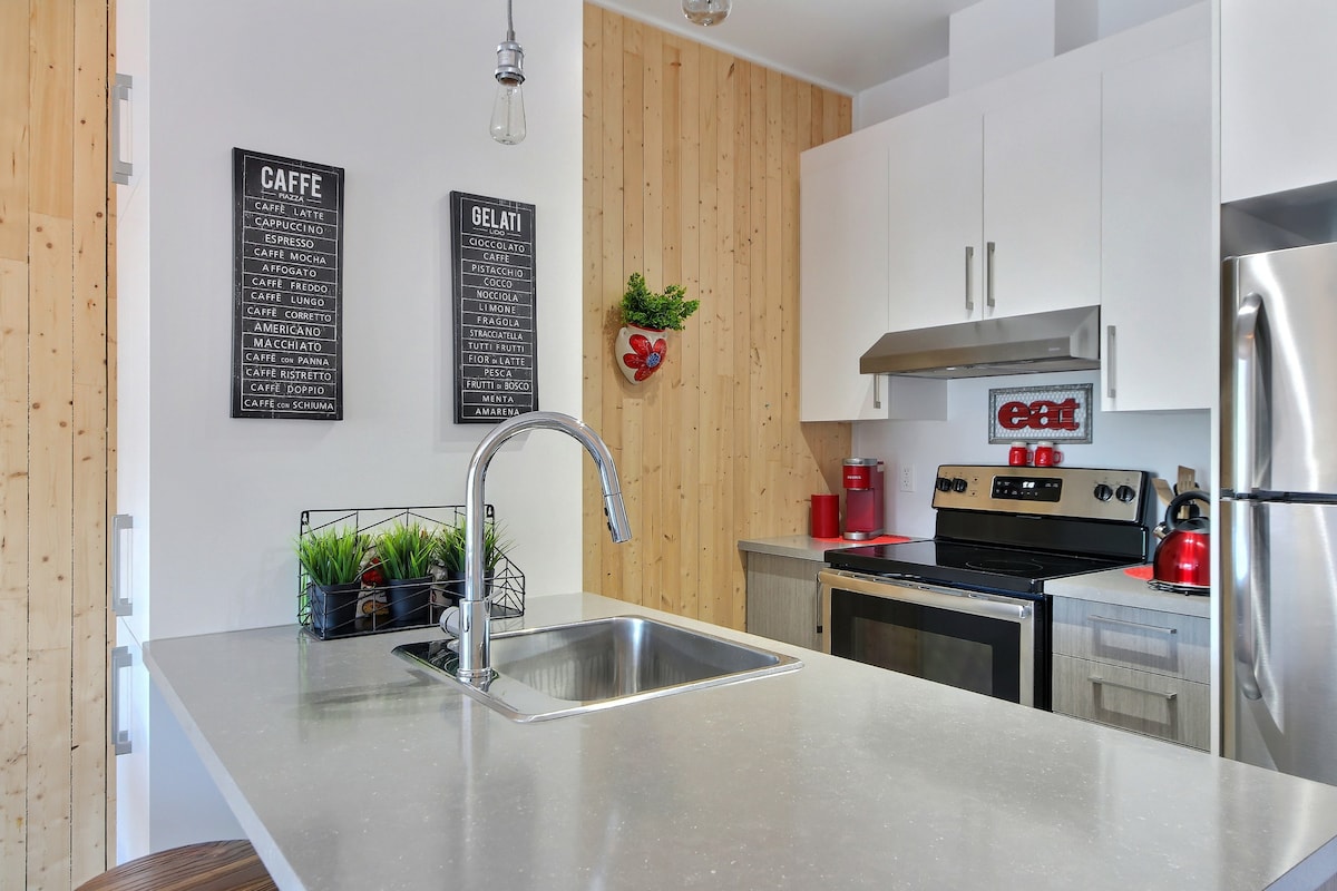 ¡Bienvenido al espacio acogedor! Un condominio nuevo, cómodo y acogedor en el centro de la ciudad de Quebec. Bien equipado y decorado con buen gusto en un estilo cálido, nuestro condominio tiene todo lo necesario para una estancia relajante digna del hotel. El espacio acogedor es: - Una ubicación excepcional en la ciudad cerca de todos los imprescindibles -Un estacionamiento interior -Una terraza con barbacoa comunitaria -Un gimnasio -ELinternet más rápido ¡Y por supuesto, anfitriones atentos!:) CITQ: 311335