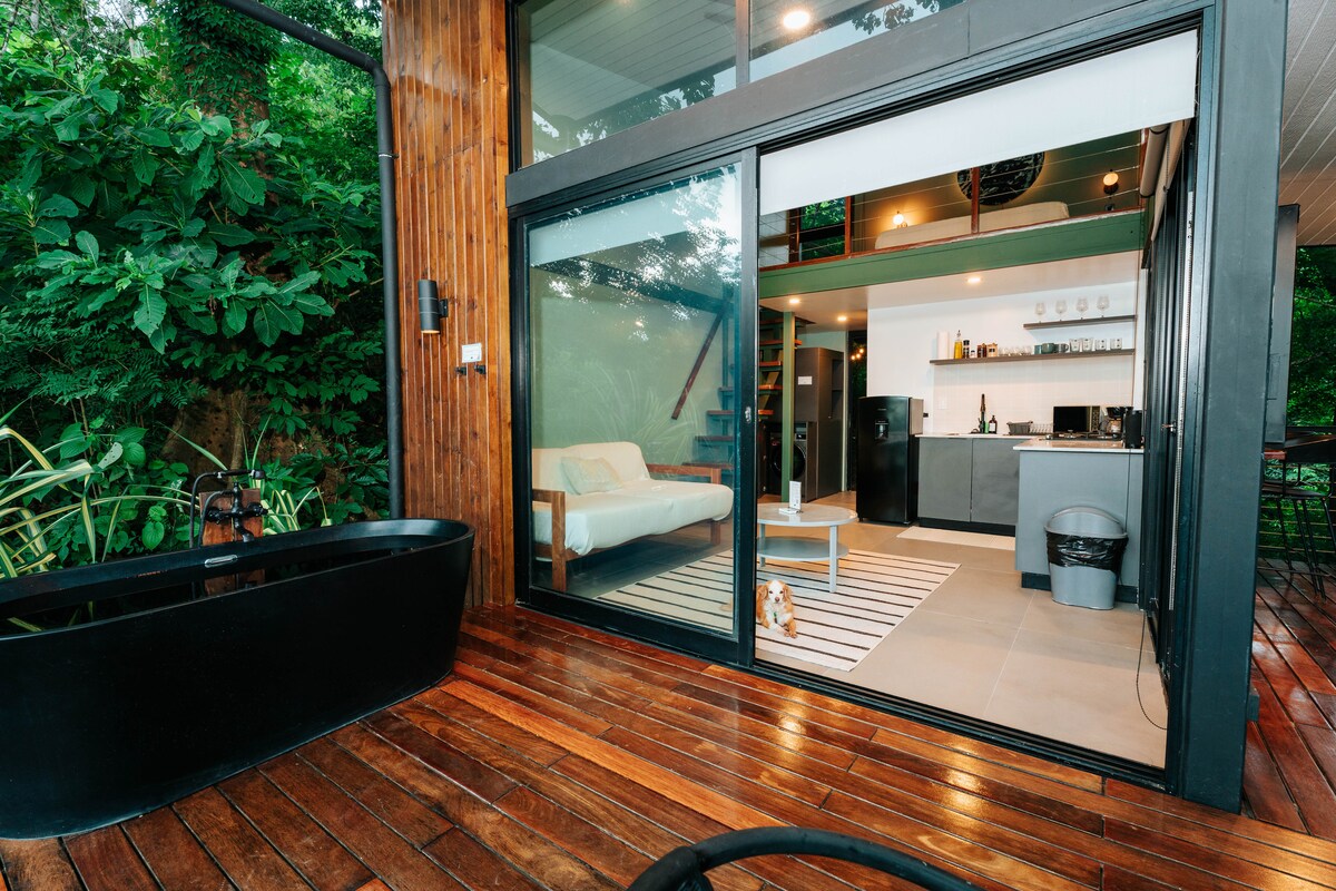 Vive Tiny. Conecta en Grande. Abraza el concepto de minimalismo y una vida sostenible, pero con todo lo necesario. La Tiny Samambaia es una pequeña vivienda de alta elegancia con un diseño ingenioso y cómodo. Situada en medio de la naturaleza, a tan solo 5 minutos en coche de Playa Venao, aquí te despiertas viendo el mar y escuchando a los monos y los pájaros.