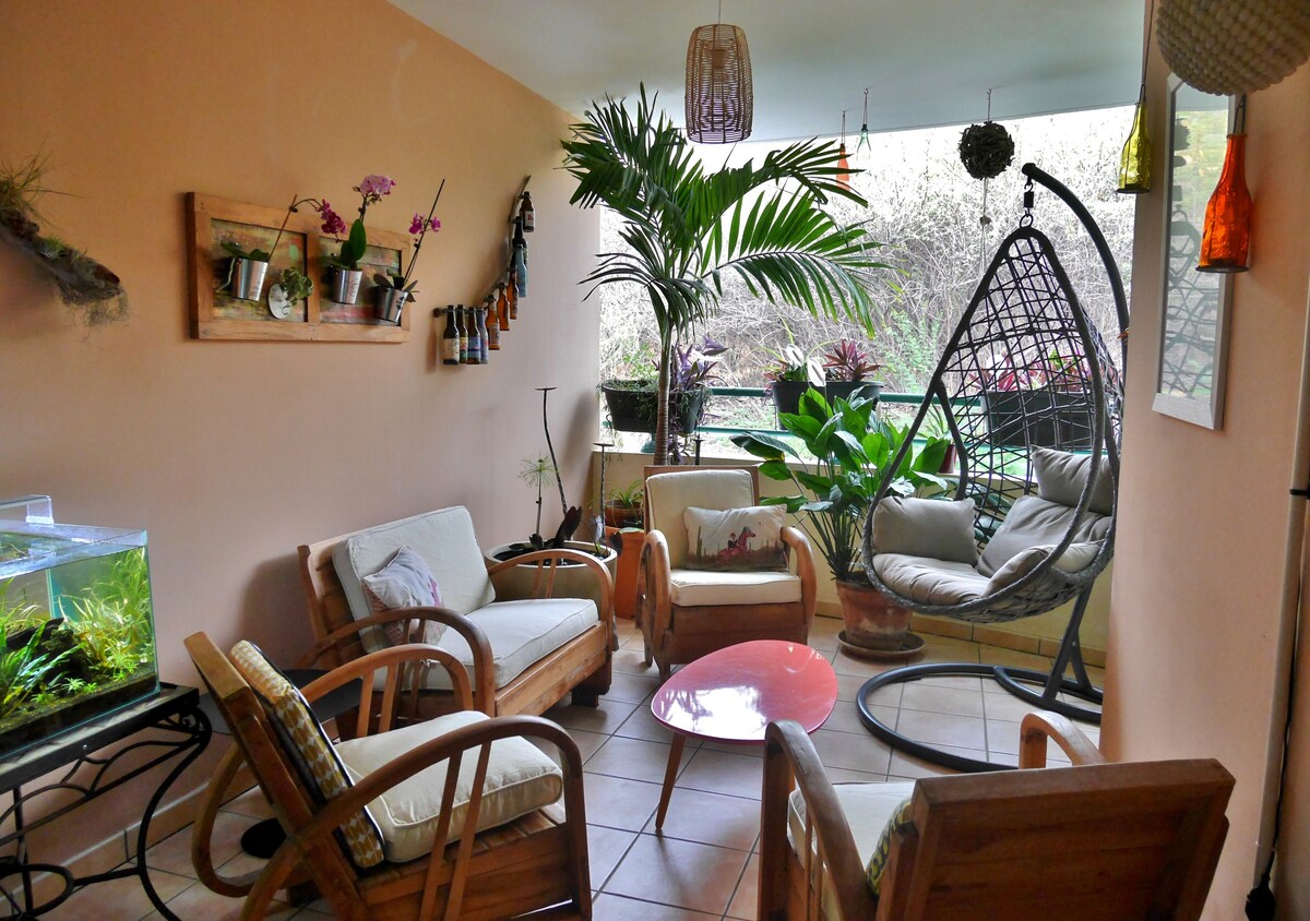 Relájese en este alojamiento tranquilo y elegante. Le Nid Vert es un encantador apartamento situado en la parte baja de La Possession. Incluye: Ropa de cama. Una habitación con cama doble de 160 + un sofá cama italiano. Una cocina equipada (nevera integrada, lavadora, secadora, lavavajillas, café Nespresso, etc.). Un balcón relajante con vistas al mar y las maravillosas puestas de sol que nos ofrece el oeste de nuestra isla. Wifi (fibra), TV con Netflix. 1 aparcamiento privado y seguro