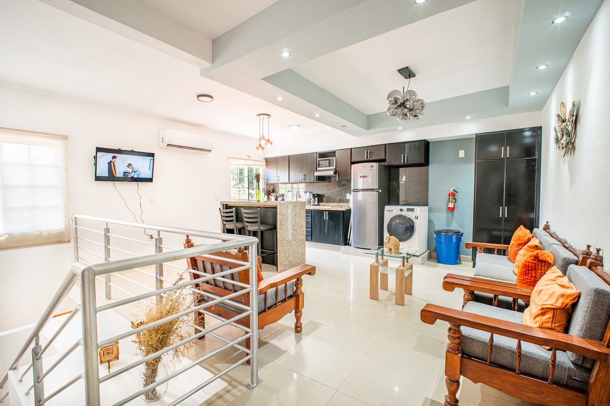 Única y placentera casa, que la hace especial por la ubicación a tan solo 2 cuadras del centro Con aires acondicionados en cada habitación, acabados limpios y frescos. Y lo mejor una pequeña alberca con hidromasaje y terraza privada.