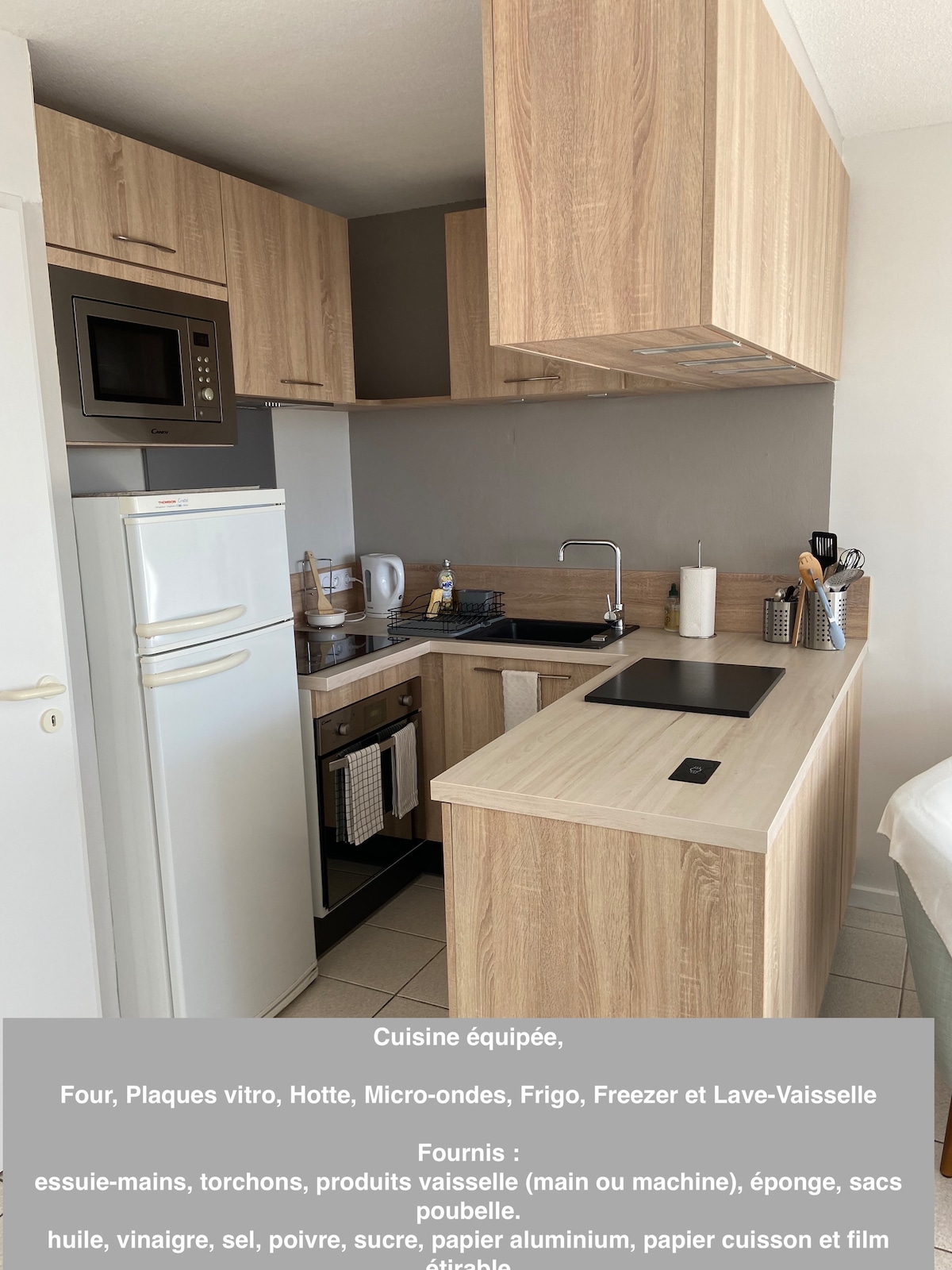 Alojamiento único con vistas al puerto desde la terraza y el interior, acceso al puerto - tiendas a 5 minutos a pie y a 10 minutos de la primera playa. El apartamento tiene 35 m2, incluye: - una entrada con armario y cuarto de la colada - un dormitorio separado con una cama de 140*190 - un cuarto de baño - una Sala de estar/Salón/Cocina de 20 m2 - una terraza con vistas al parque de la copropiedad. Se admiten animales bajo reserva: cumplimiento del reglamento y registro en la reserva. Sin cargos adicionales