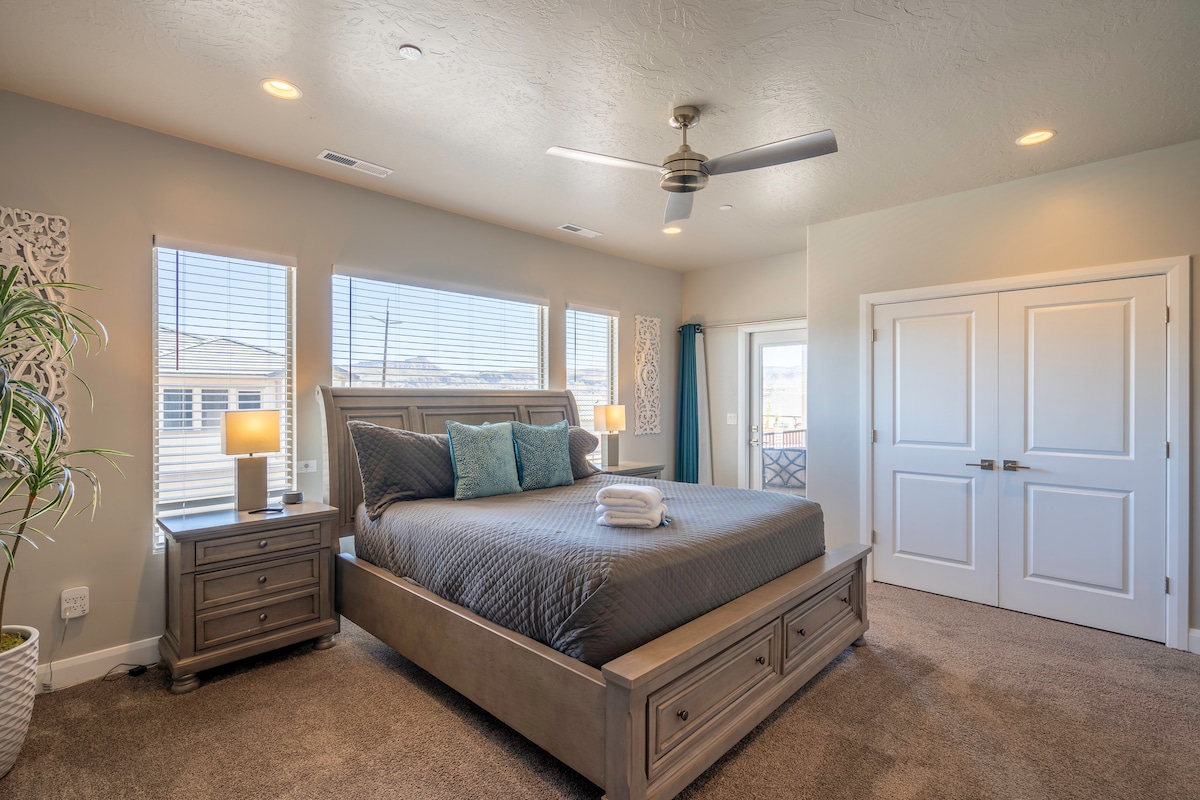 Casa adosada a estrenar que seguramente se convertirá en tu nuevo alojamiento favorito mientras exploras todo lo que el sur de Utah tiene para ofrecer. Esta propiedad se encuentra a poca distancia en coche de atracciones como el Parque Nacional Zion y el embalse Sand Hollow & Quail Creek. Más información - Televisores inteligentes en todas las habitaciones (por ejemplo, Netflix, Hulu, etc.) - 2 literas completas, 4 literas individuales. - 2 camas tamaño king (dormitorio principal con baño privado). - Aparcamiento en garaje para vehículos. - Cubierta superior privada y patio