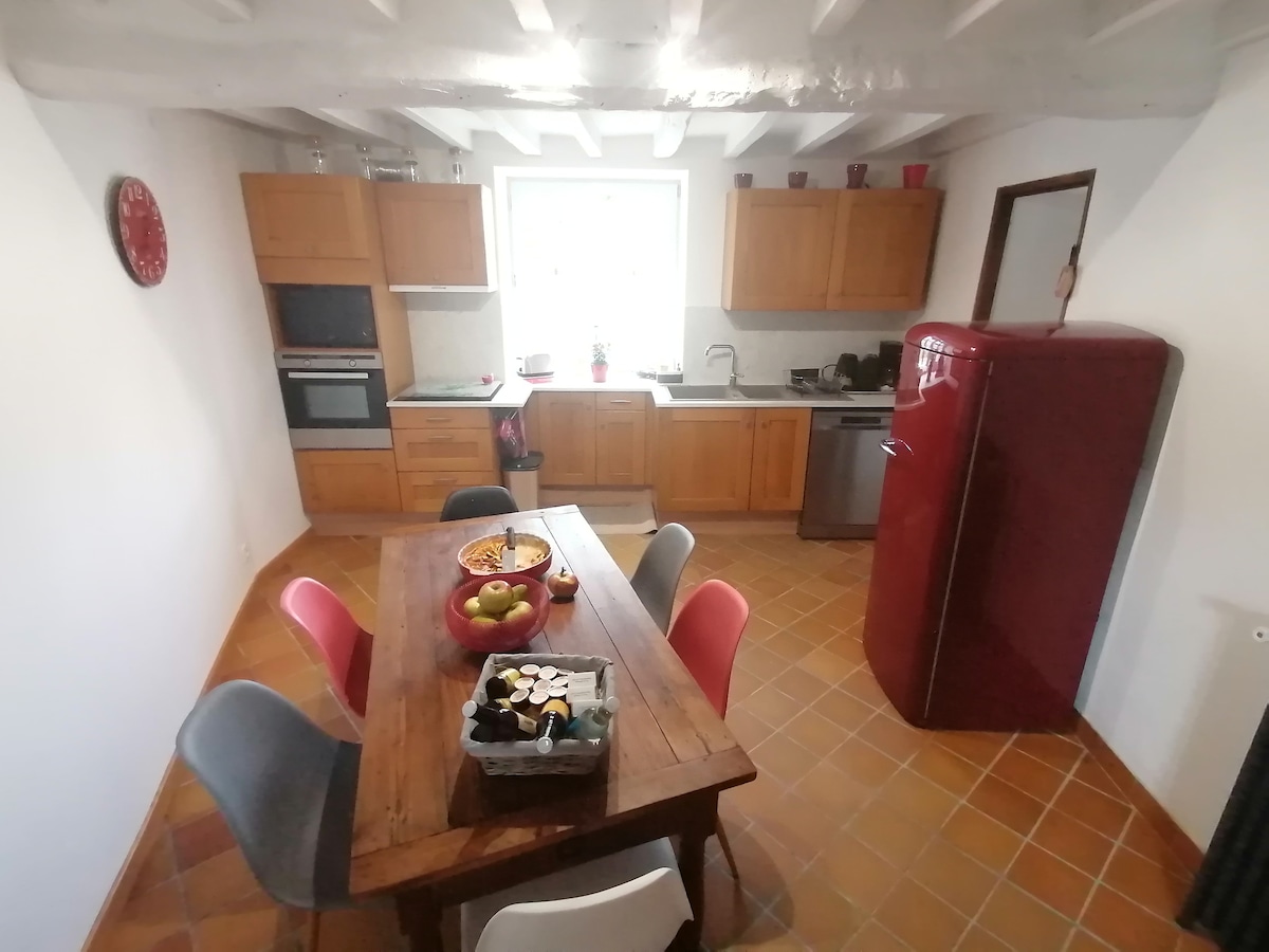 Descubre esta encantadora casa tallada en el acantilado, perfecta para una estancia en pareja: - Habitación con cama tamaño king, bañera de hidromasaje iluminada con velas, televisión orientable, ducha italiana. - Dos salones con TV, cocina totalmente equipada, estufa de pellets, entretenimiento: Netflix, PlayStation 5, Switch, dardos… - Una terraza con muebles de jardín. - Un espacio de oficina con dos pantallas y vestidor. Un lugar tranquilo, cálido y atípico, entre el encanto rústico y el confort moderno.