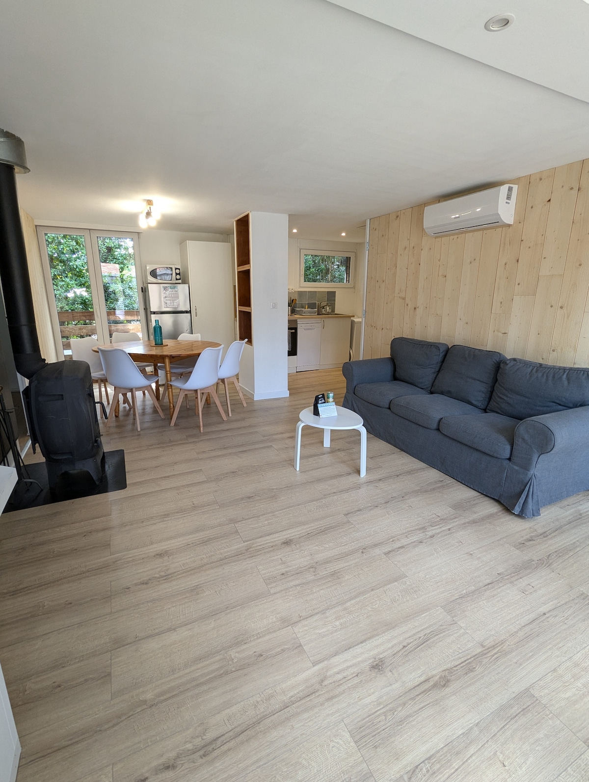 Casa de 2 dormitorios, capacidad para 6 personas, amplio jardín, rodeada de pinares. Esta es una encantadora casa totalmente equipada, orientada al sur, situada en Labenne Ocean, a 500 metros del océano. La sala de estar de la cocina de planta abierta tiene puertas correderas de vidrio orientadas al sur, lo que hace que la habitación sea muy luminosa y espaciosa. La casa fue construida con nada más que un hermoso bosque de pinos detrás. Puedes ir caminando a los lugares de surf, la playa, tiendas locales, bares, restaurantes y comida para llevar.