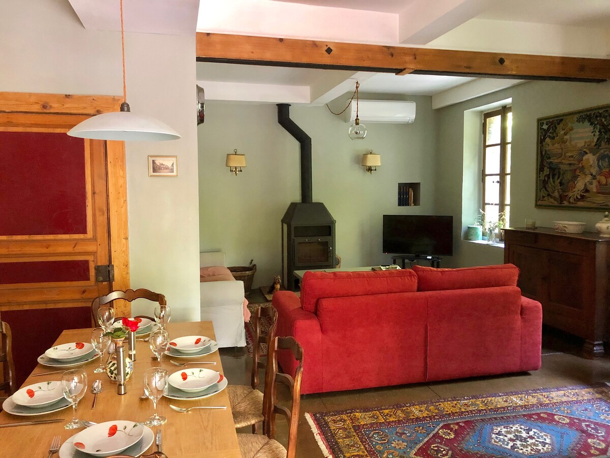 Pequeña casa de 27 m2, situada en medio de los árboles en un entorno tranquilo. Para acceder a ella, deberá caminar por un camino durante 200 metros cuesta arriba. La casa consta de una sala de estar con sofá cama, una zona de cocina, un dormitorio y un baño con inodoro seco. Desayuno no incluido, pero ofrecemos comidas caseras. La potencia máxima es de 800W: compruebe sus dispositivos antes de venir. Nos comunicamos exclusivamente a través de mensajería/correo electrónico, el teléfono no capta aquí.