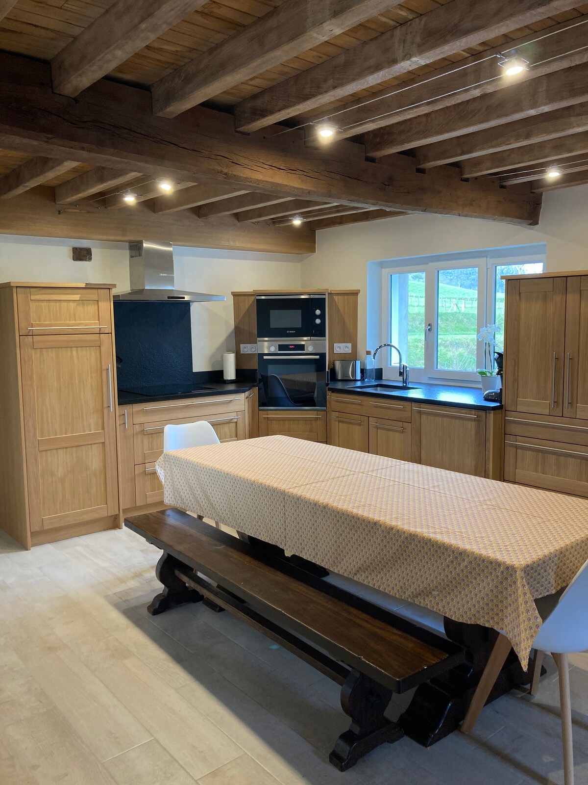 Proyecto de familia, un sueño de niño, «el lugar ideal» como decía mi hija Prune pequeña. A 1400 m de altitud con una vista impresionante, la casa está abierta a las montañas ya sea cocinando, como debajo del edredón. Estarás en nuestra casa con mi colección de vinilos, nuestros libros de cocina para pasar el mejor momento de descanso. Bañada por la luz, una invitación al exterior no se perderán las caminatas desde la casa.