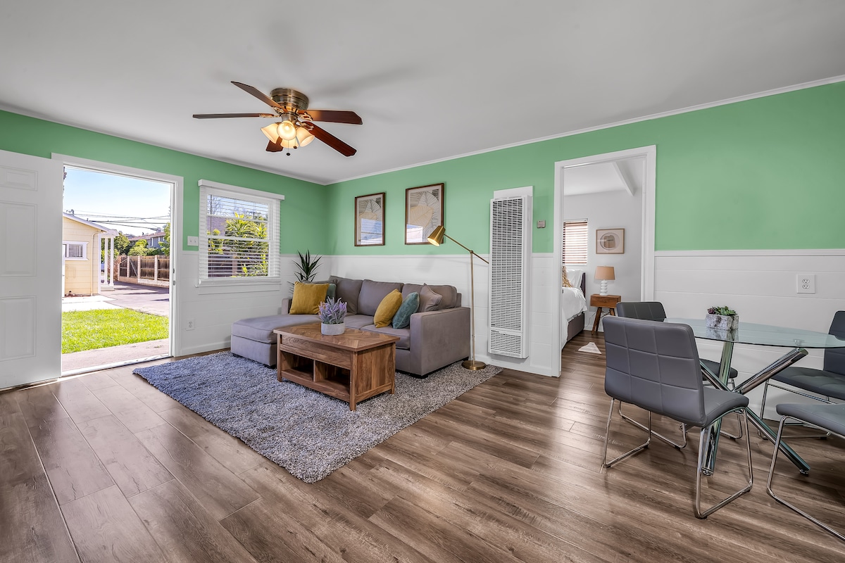 recién remodelado , entrada privada al estudio/dúplex y patio. Playa , tiendas , los mejores restaurantes, puerto deportivo para surf de remo, etc. ubicación increíble, a poca distancia a pie de todo , lavandería completa, 1 espacio de estacionamiento en la parte trasera. Yoga gratuito todos los días en la playa , esterillas de yoga y bicicletas disponibles . Descuentos mensuales disponibles . 1 cama tamaño queen y un gran sofá con cojines ortopédicos para dormir . Tiene capacidad para 3 . Por favor, si planeas traer una mascota, marca esa casilla para mascotas y lee las reglas para mascotas tks