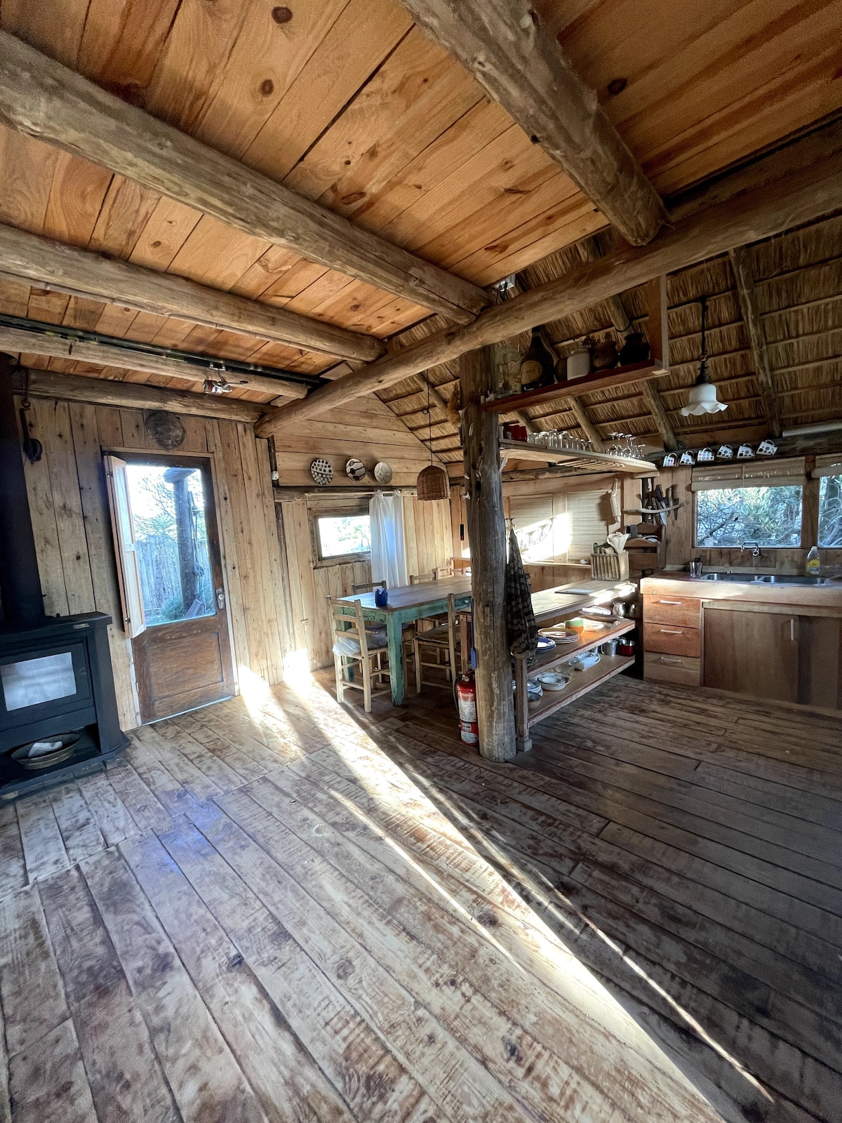 Hermosa cabaña monoambiente estilo open space, construida en madera y quincha sobre palafitos, rodeada de naturaleza. A 10 min de la playa, media cuadra del parque forestal y tres del centro del balneario. Cuenta con entrepiso con colchón estilo tatami, cocina equipada, agua corriente e instalación eléctrica. Ideal para 2 personas que buscan descanso simple y auténtico cerca del mar, las dunas de Cabo Castillos y Cabo Polonio.