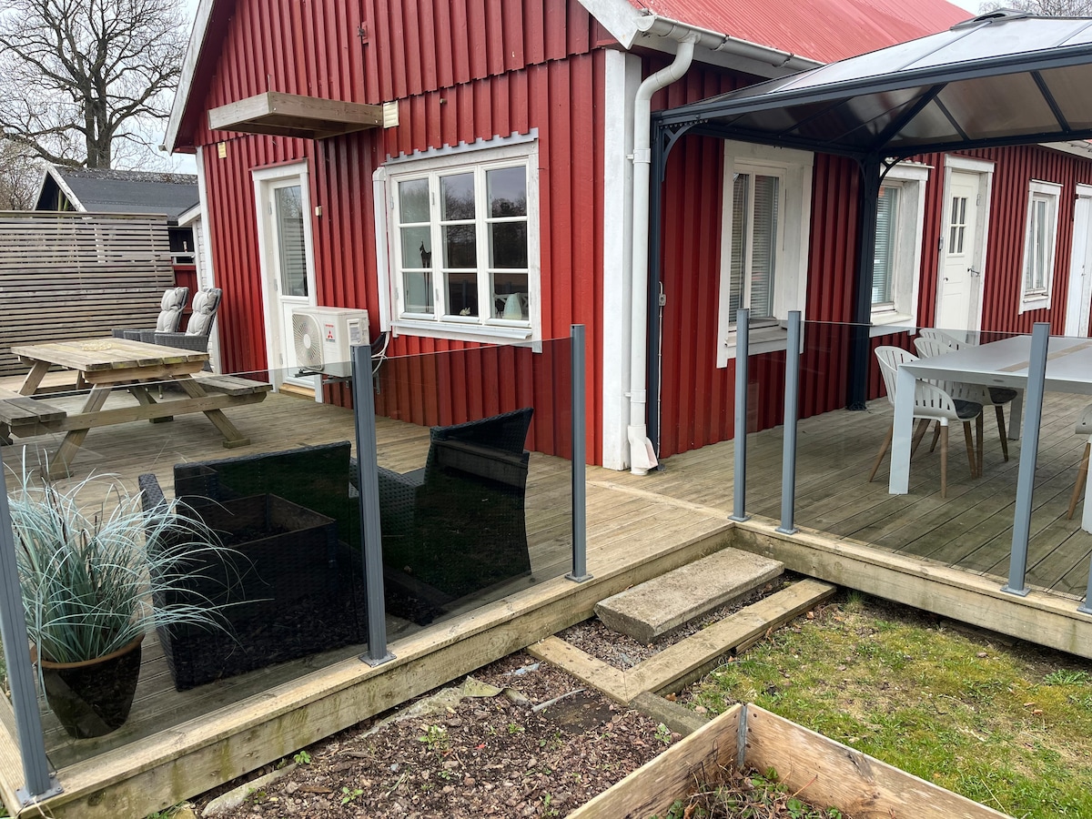 Casa de campo independiente que consta de salón con cocina, dormitorio con 3 camas en una litera. Baño con ducha. La cabaña está equipada con porcelana de porcelana para 4 personas. Frigorífico con congelador. Cocina de inducción, horno, ventilador, microondas, cafetera, etc. Entrada privada. Bomba de aire con posibilidad de refrigeración. Terraza de madera y muebles de exterior para 4 personas. Aparcamiento privado al lado de la casa rural. La cabaña está situada en el centro de Mellbystrand, a poca distancia a pie de una bonita playa, tienda de conveniencia, restaurantes, gran centro comercial y sendero para hacer ejercicio.