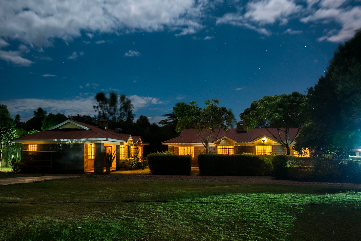 Trae a toda la familia a este lugar tranquilo para vacaciones, relajación y trabajo o meditación sin ruido. Ofrecemos hasta 2 habitaciones con baño privado con una pequeña cocina en cada uno para que pueda hacer sus propias comidas. Como huésped, espera disfrutar de una habitación privada y solo compartir el patio delantero con otros huéspedes. 3 o 4 huéspedes obtienen todo el alojamiento Internet rápido y confiable disponible. La televisión se proporciona en una de las habitaciones. En Ol Pejeta Elegance Cottages encontrarás limpieza, comodidad y calma en un lugar acogedor.