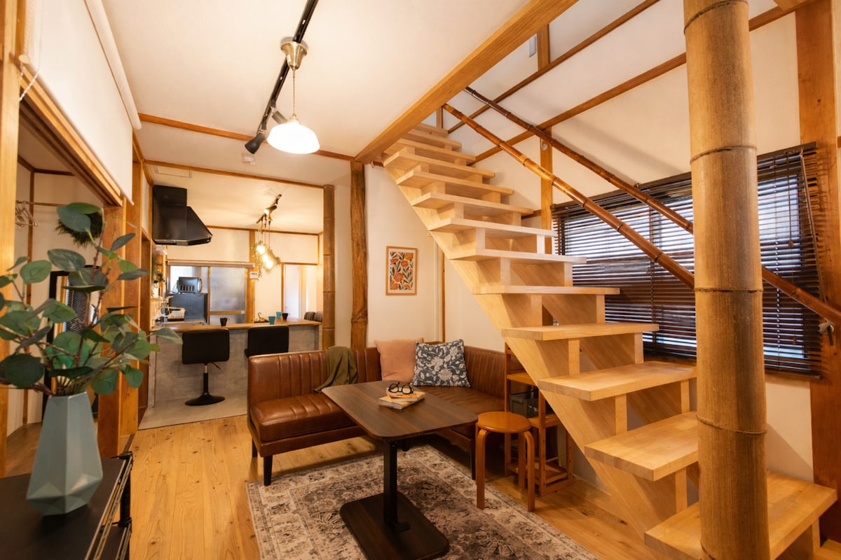 GUEST HOUSE Hotori 2nd is a cozy terrace house in a quiet neighborhood near Lake Biwa, just 11 minutes by train from Kyoto Station. It offers a Western-style room downstairs and a tatami room upstairs, combining modern comfort with traditional charm. A high chair and kids’ tableware are available for families. Zeze Station is a 7-minute walk and Keihan Nishiki Station is 2 minutes. A drugstore (with fresh foods), coin parking, sento bath, and convenience store are all within 2–5 minutes.